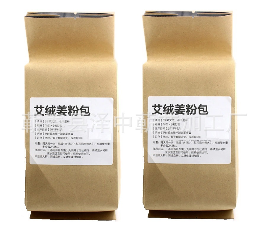 自制蕲艾粉泡脚包,透明自封袋包装。品牌:正力蕲艾。