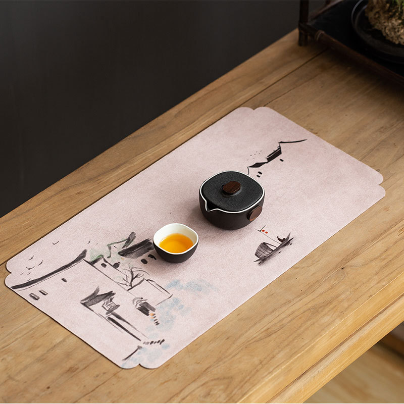 Окрашенный чайный коврик маленький чайный магазин замшевая водонепроницаемая ткань дзен стол флаг чайный коврик новый китайский стиль сухой скатерть чайная церемония