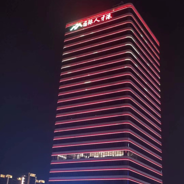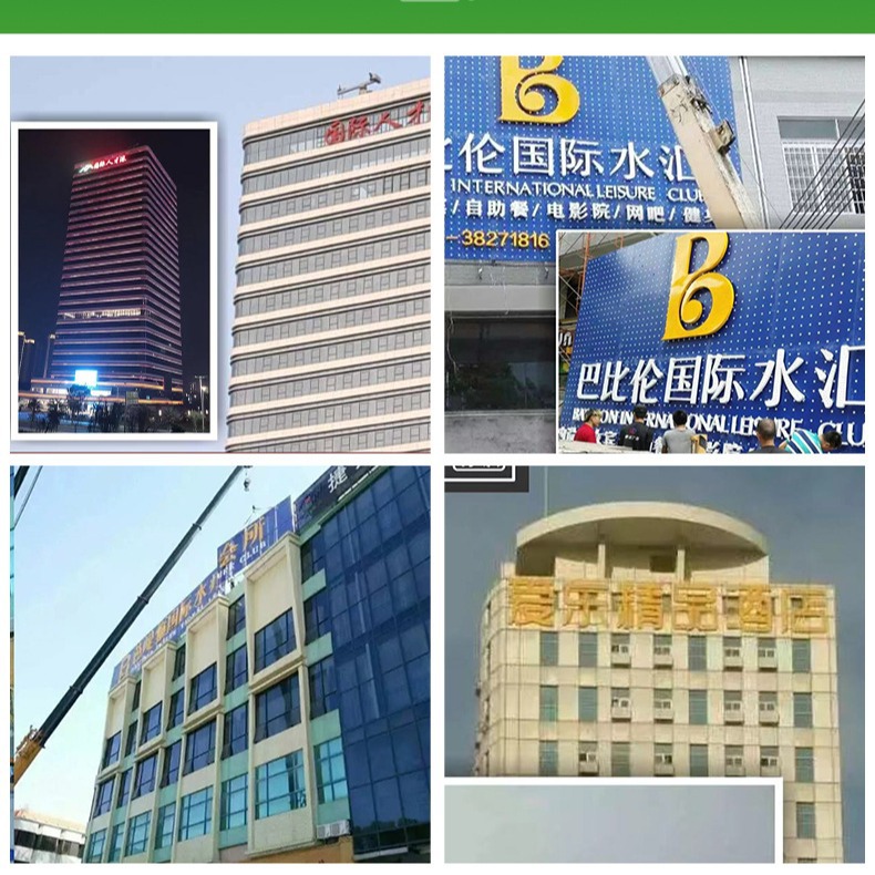 Гуанчжоу отель стеклянная занавеска стена светящиеся персонажи открытый дах большие символы вывеска неоновый свет нержавеющая сталь штамповка матричные персонажи