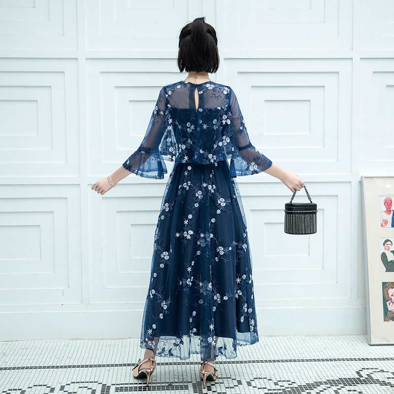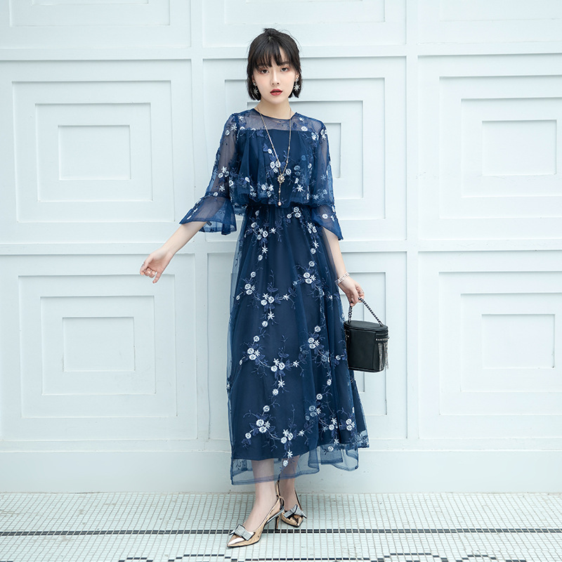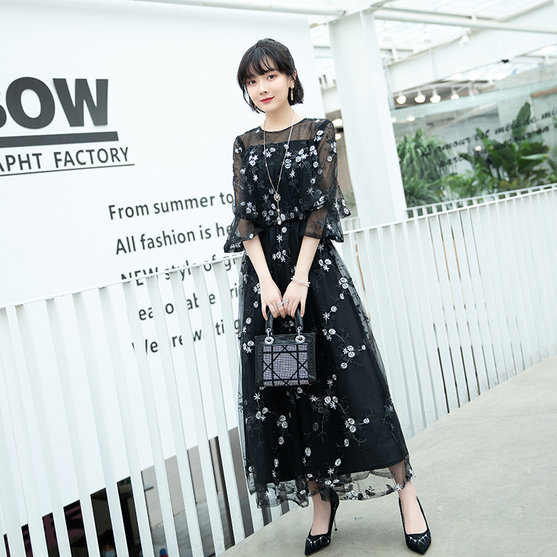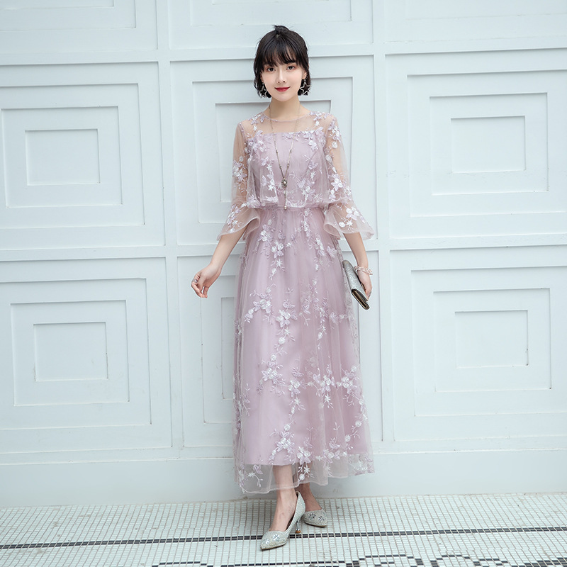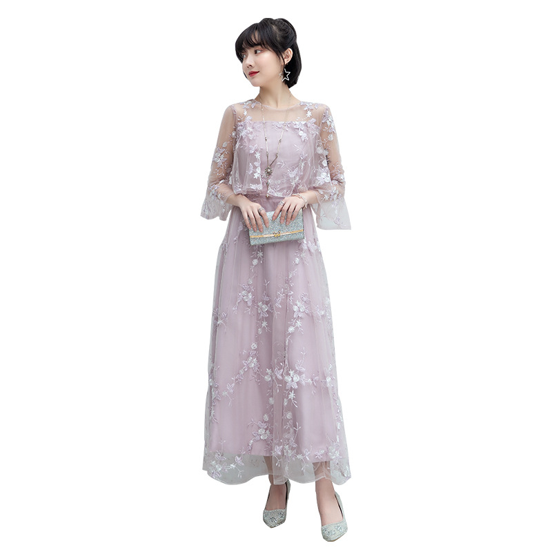 Кружевное платье для женщин, новая модель зима 2026, элегантное, с завышенной талией, стройнящее, длинное, разноцветное, скрывающее живот, с рукавом до локтя.