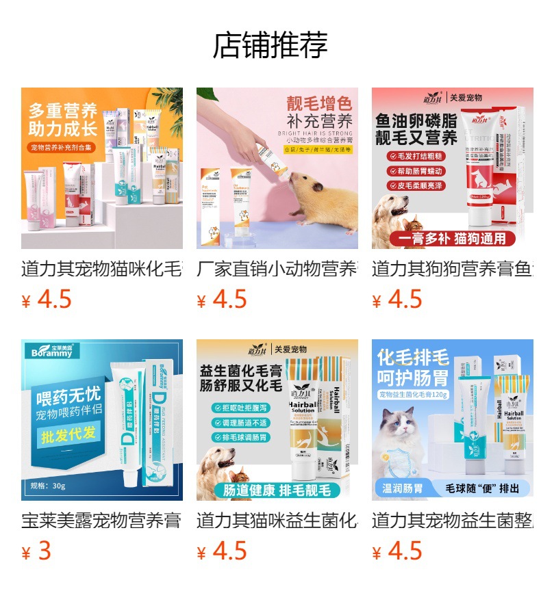 Питательная паста-120г; Лецитиновый крем-120г; Лизиновая паста-120г; Пробиотический кишечный крем-120г; Пробиотический крем для волос-для кошек 120г