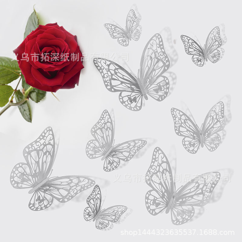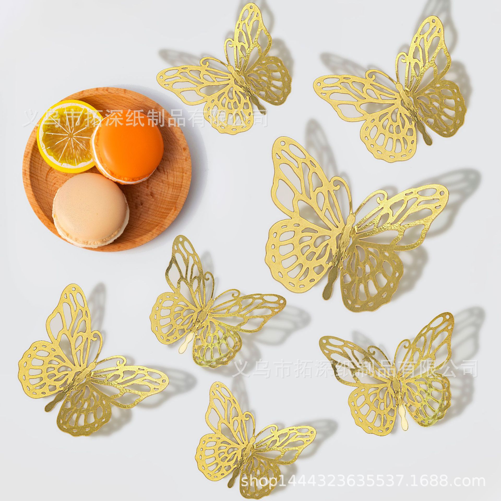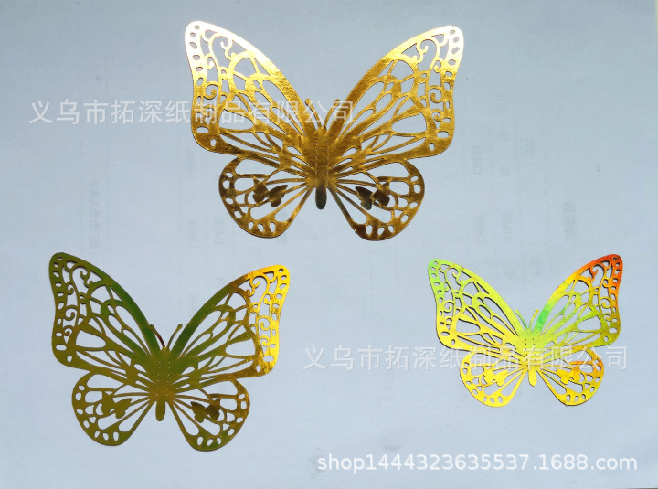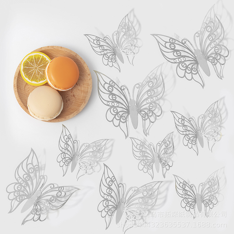 Золотая и серебряная полая трехмерная бабочка 3D настенная наклейка имитация Двусторонняя декоративная бабочка металлическая текстура