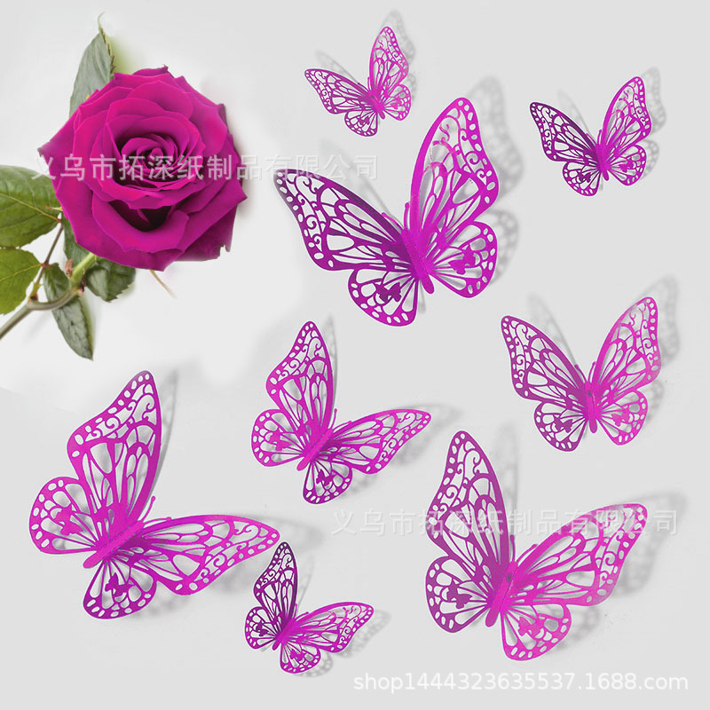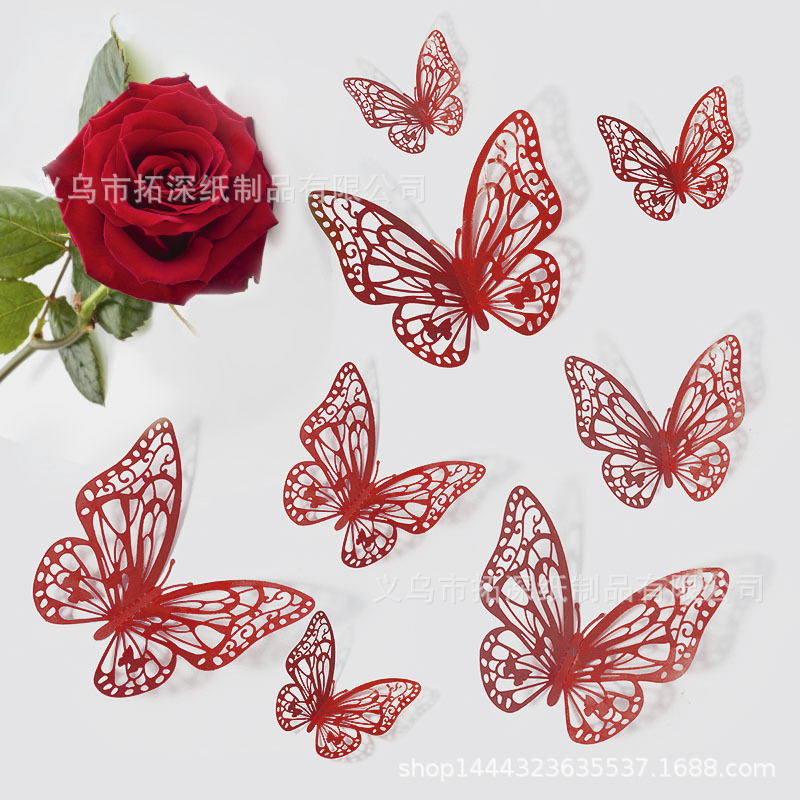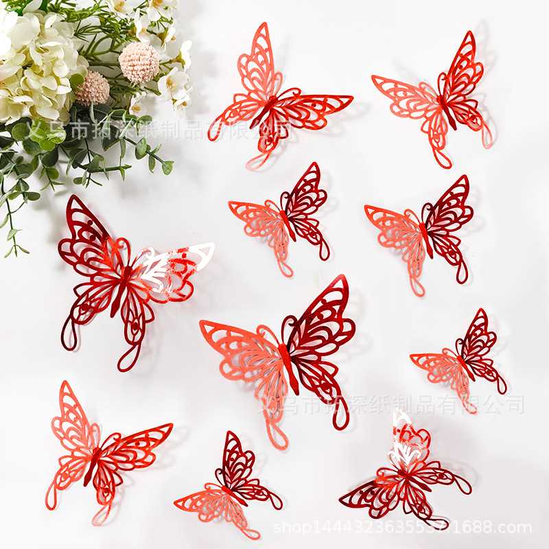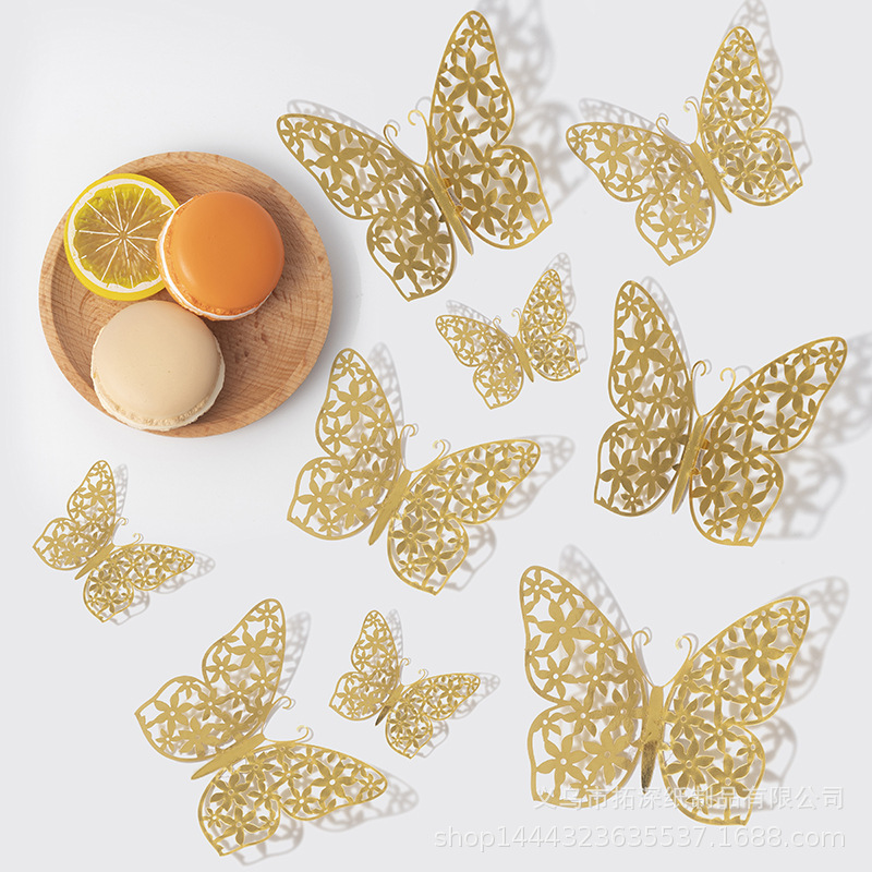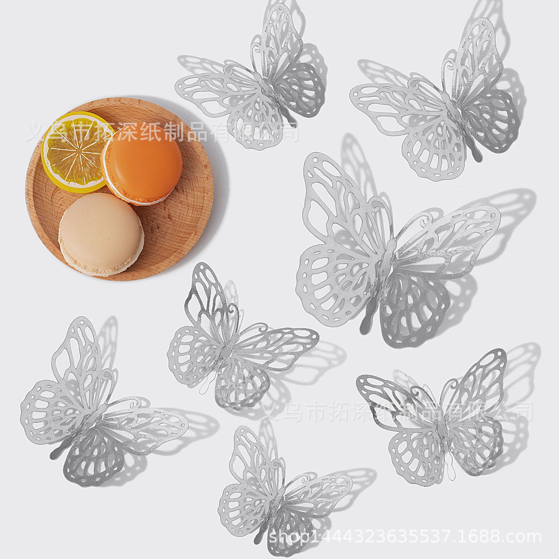 Золотая и серебряная полая трехмерная бабочка 3D настенная наклейка имитация Двусторонняя декоративная бабочка металлическая текстура
