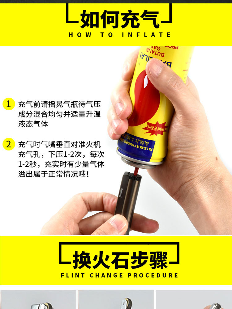 气体原料:采用 可燃性丁烷气,无臭味,使用时间长,对机壳无腐蚀性。