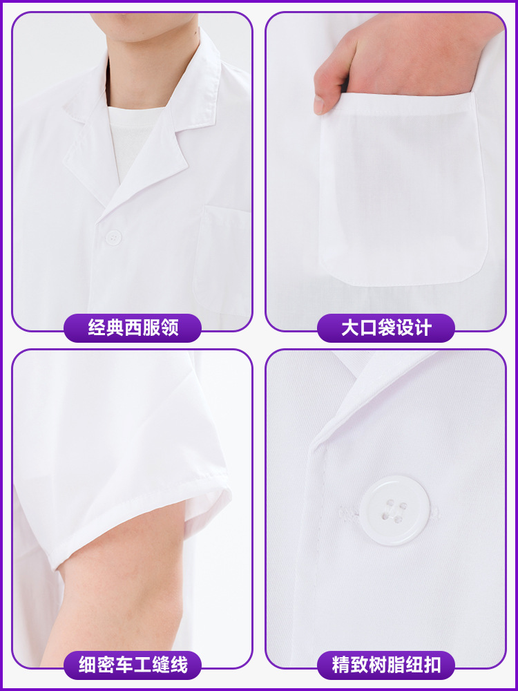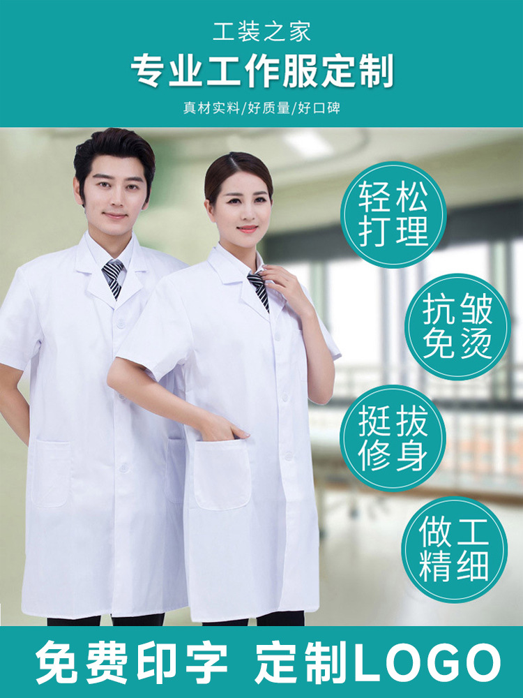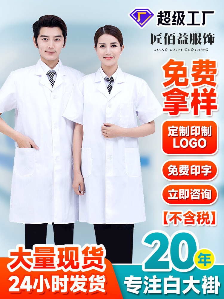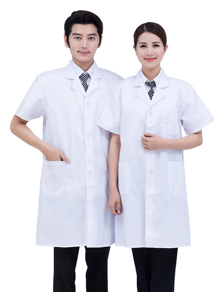 Универсальный белый халат для работы, тонкий и облегающий, для студентов и преподавателей, лабораторный халат, медицинский белый халат с короткими рукавами.
