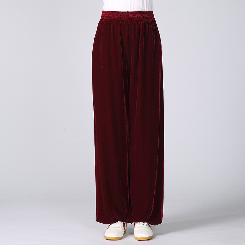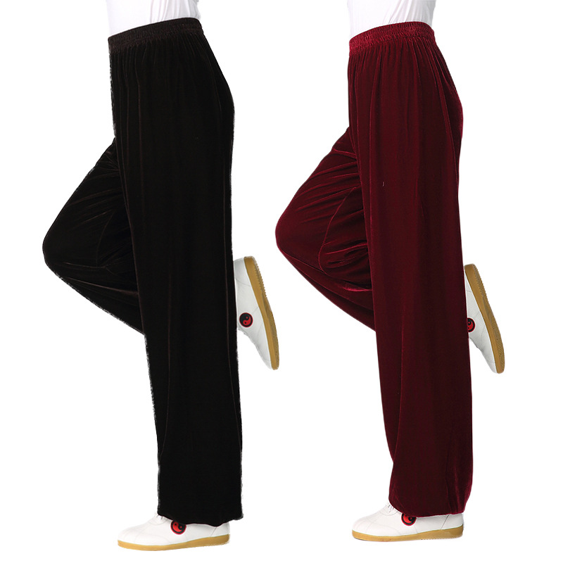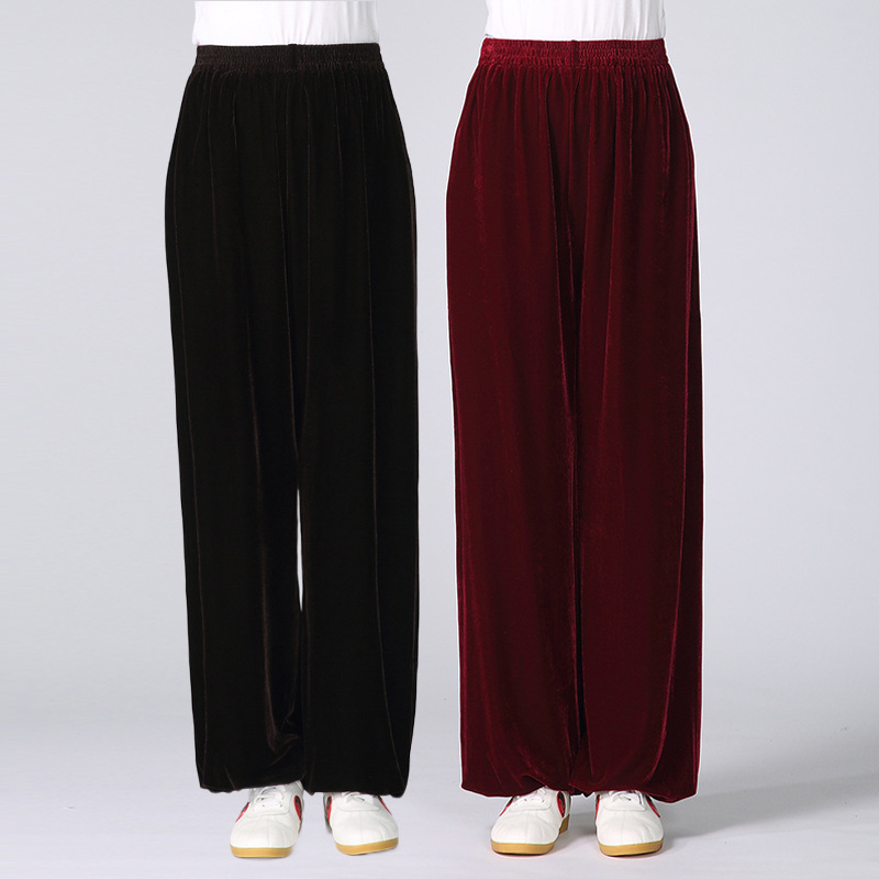 Прямые поставки с фабрики: В наличии бархатные брюки Тай Чи для мужчин и женщин, осенне-зимняя однотонная одежда для боевых искусств Тай Чи, одежда для йоги