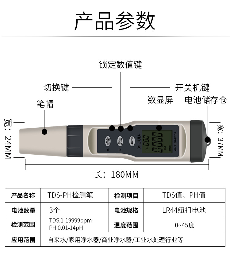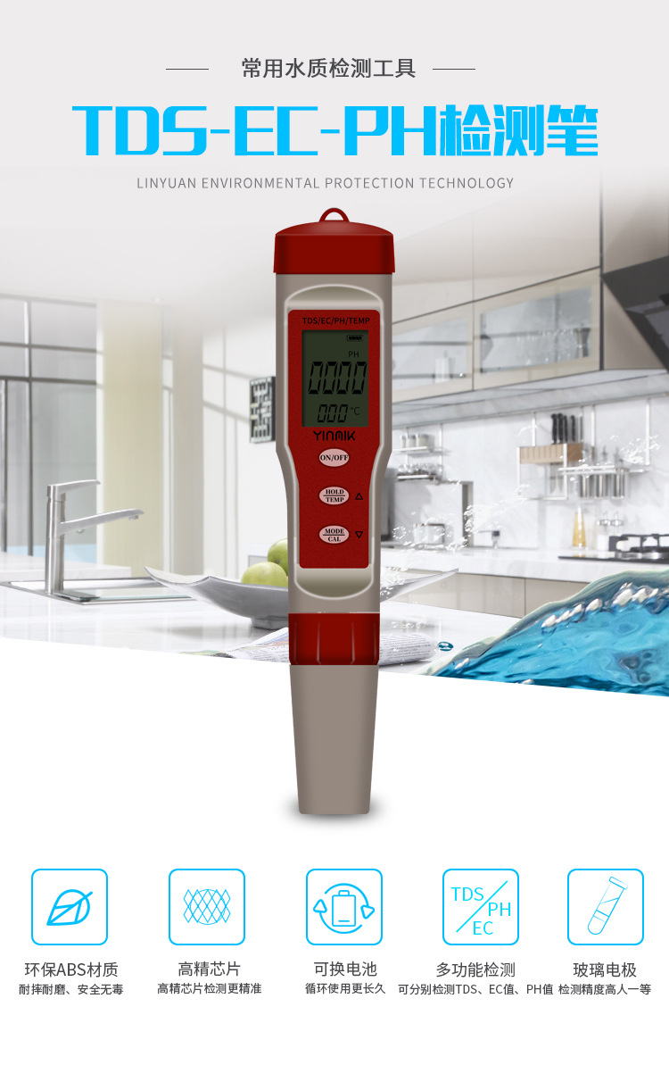 Новая ручка для проверки качества воды значение pH TDS Температура проводимости три в одном кислотомер тестовая ручка pH-метр