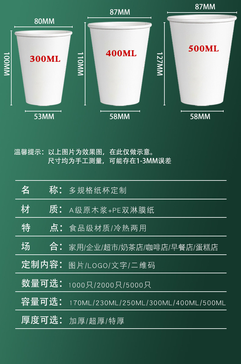 7 унций 9 унций 12 унций; 9 унций 250 мл 280 г густой 1000 штук; 6,5/7 унций 200 мл 280 г, утолщенный, 5000 штук; 9 унций 250 мл 280 г густого 5000 штук; 6,5/7 унций 200 мл 280 г, утолщенный, 1000 штук; 9 унций 250 мл 300 г очень густой 1000 штук; 9 унций 250 мл 350 г очень толстая модель высокого класса 1000 штук; 12 унций, 300 мл, очень густой, 1000 штук по индивидуальному заказу; 9 унций 250 мл 300 г очень густой 5000 штук; 9 унций 250 мл 350 г ультратолстая высококачественная модель 5000 штук; Утолщенная белая чашка на 9 унций в наличии, 1000 штук.; 8 унций (двойной слой, очень толстый) полый, 300 мл, 500 штук; 10/12/16А двухслойные бумажные стаканчики для кофе/чая с молоком 1000 шт.