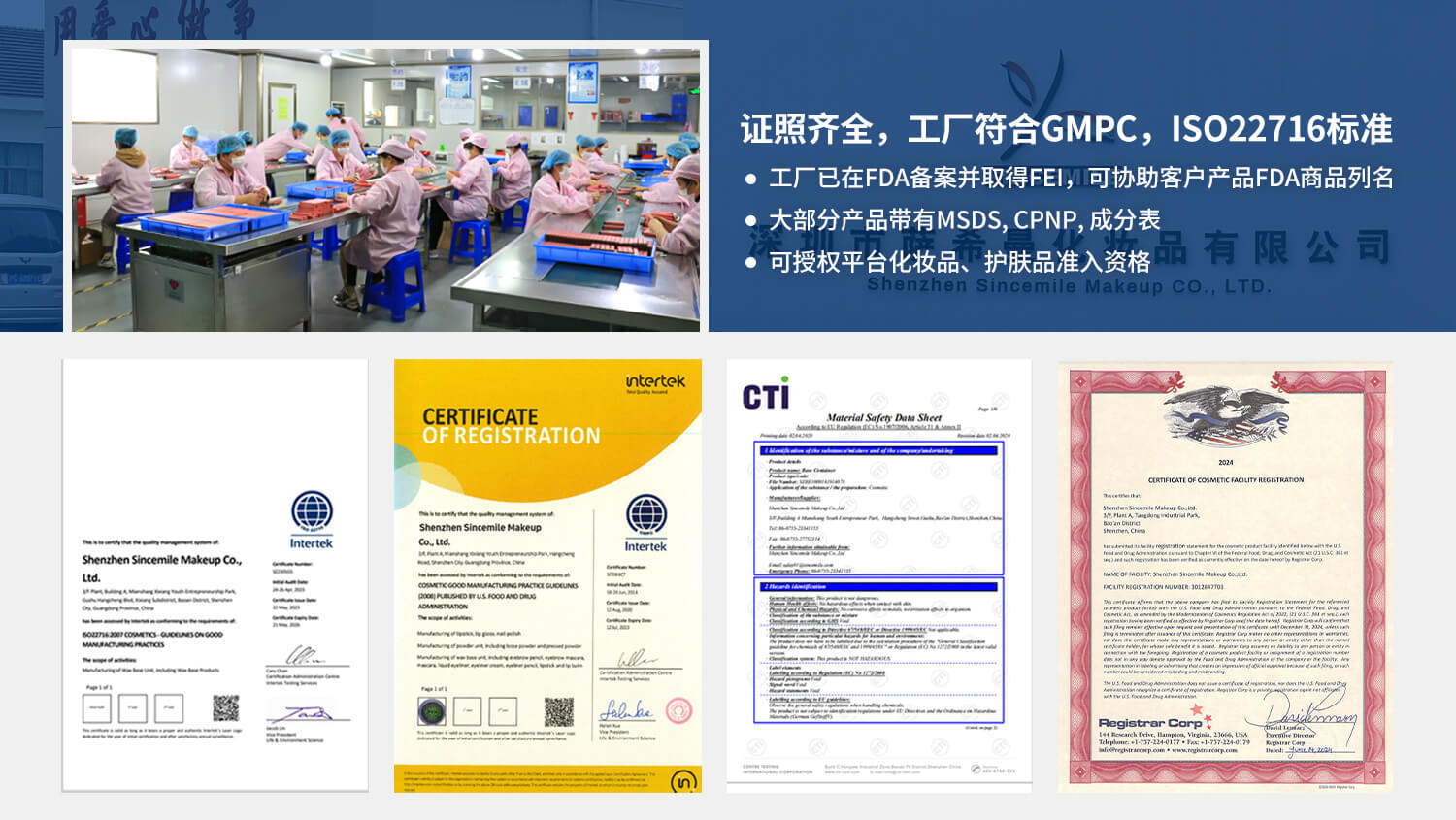 我司产品在符合要求的环证书我司展示的证书如GMPC和ISO22716
