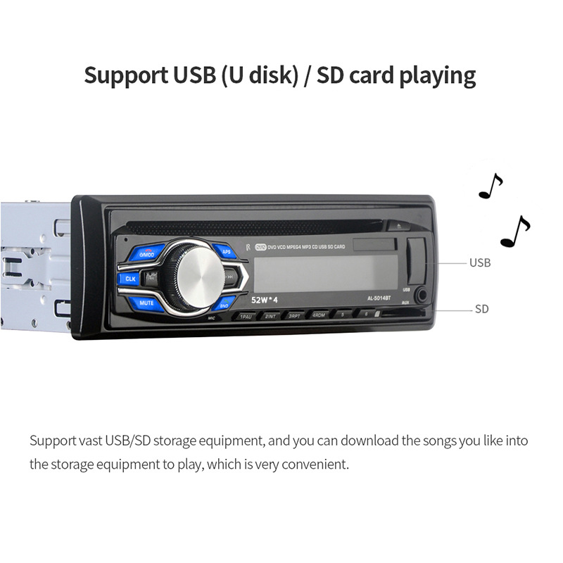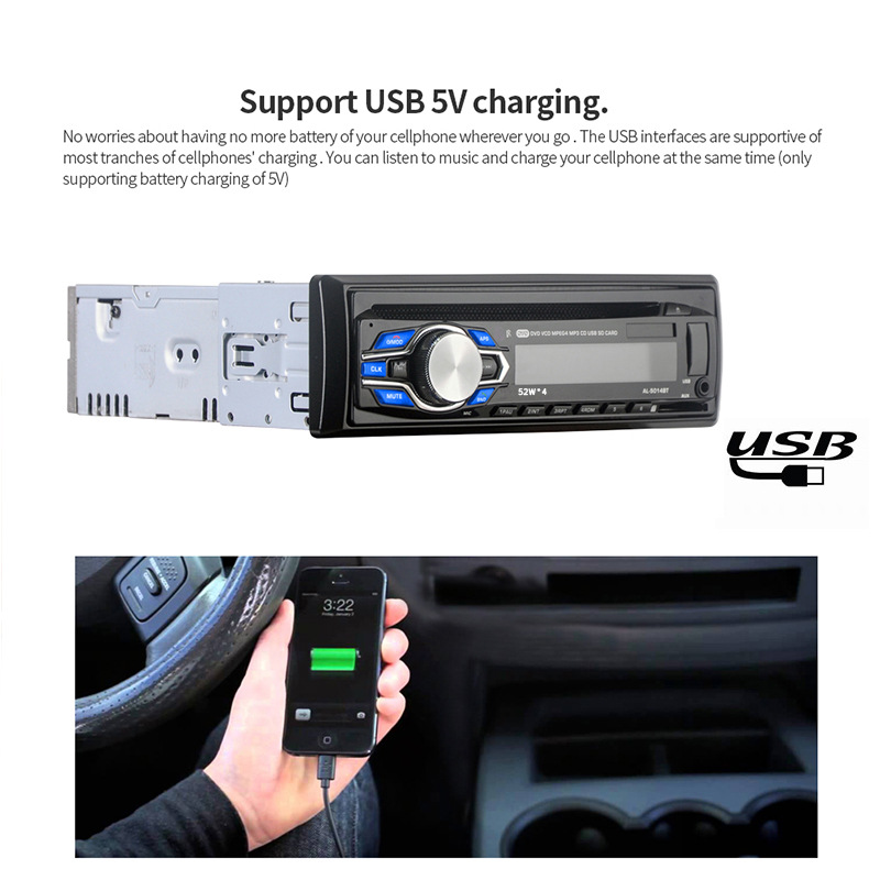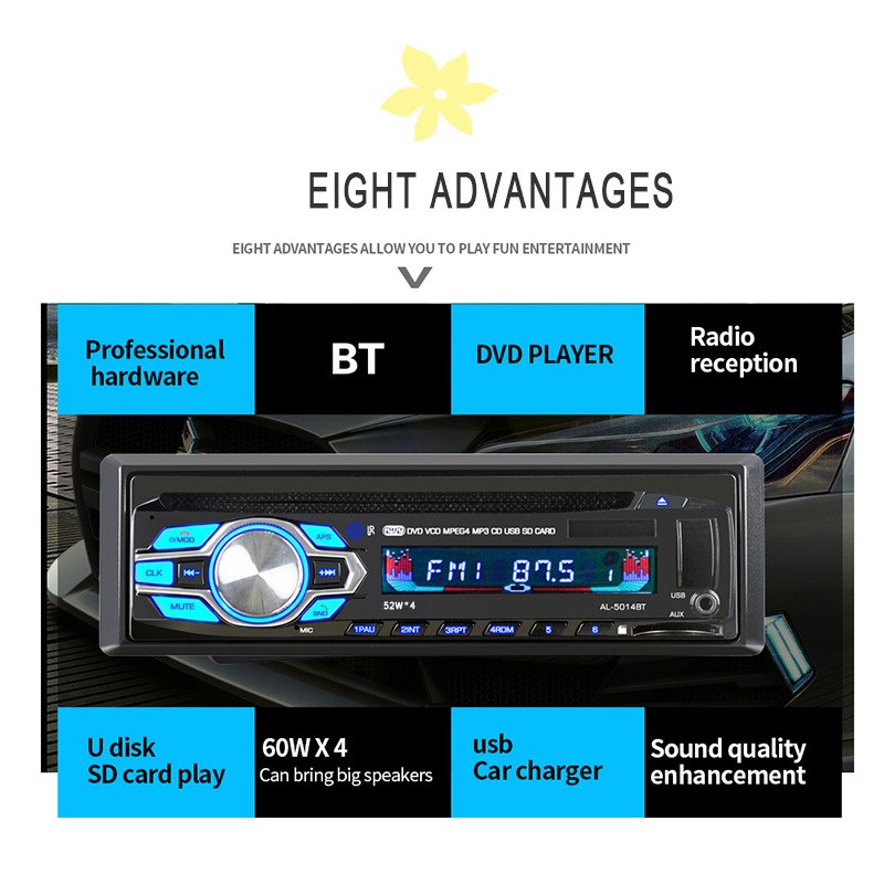 1 Din 12V汽车DVD CD播放器车辆MP3立体声汽车免提自动收音机BT音频收音机5014汽车造型无线遥控器