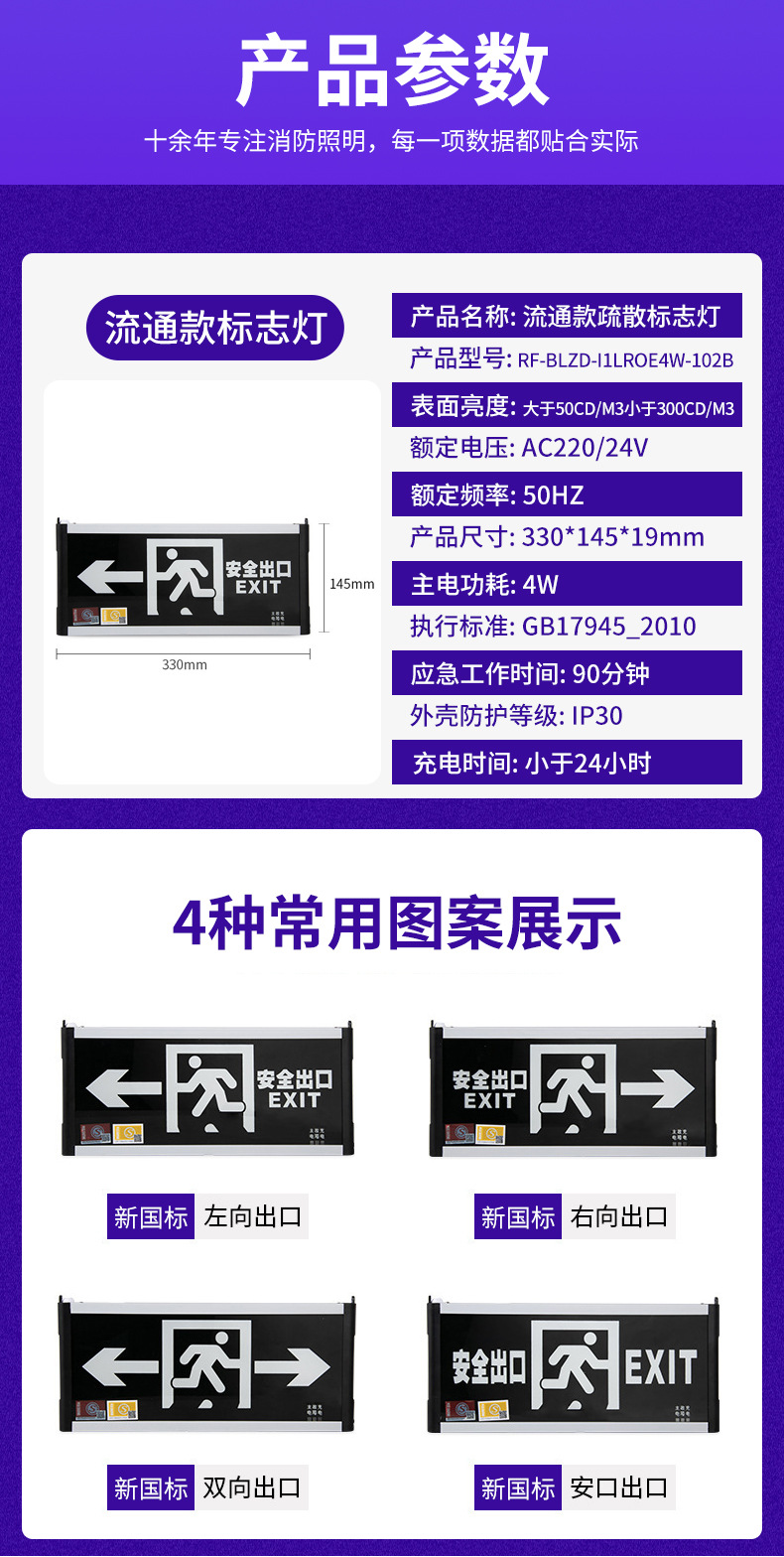 Новый национальный стандарт, индикатор пожарной безопасности, односторонний и двусторонний аварийный знак, эвакуационный светильник, индикатор аварийной лестницы