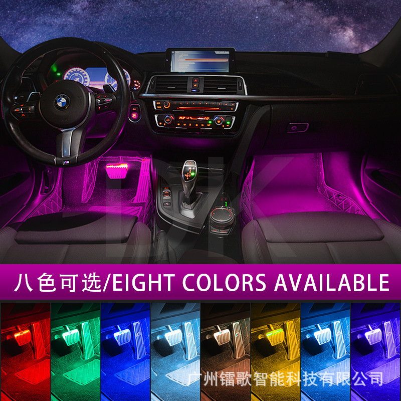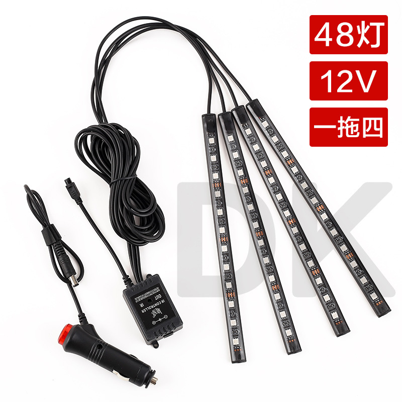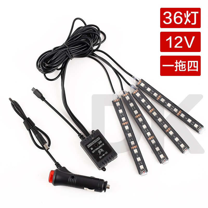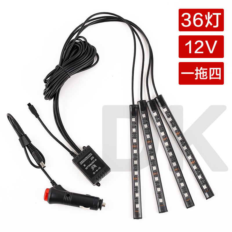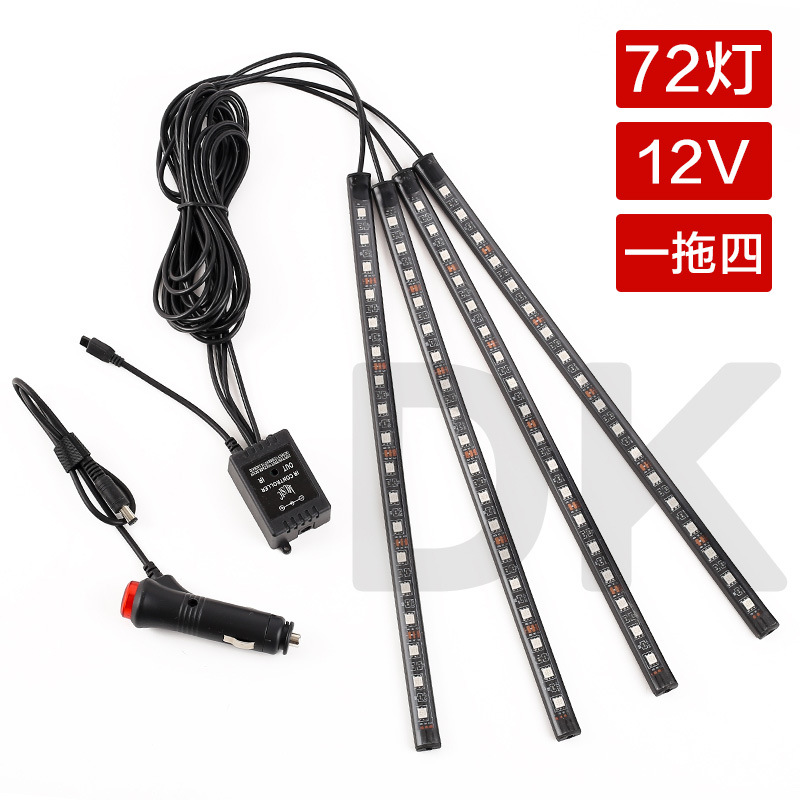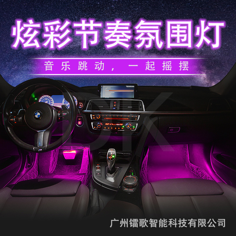 Атмосферный свет для ног автомобиля один перетащите четыре светодиода атмосферный свет красочный Голосовое управление пульт дистанционного управления RGB музыкальный ритм обработка света