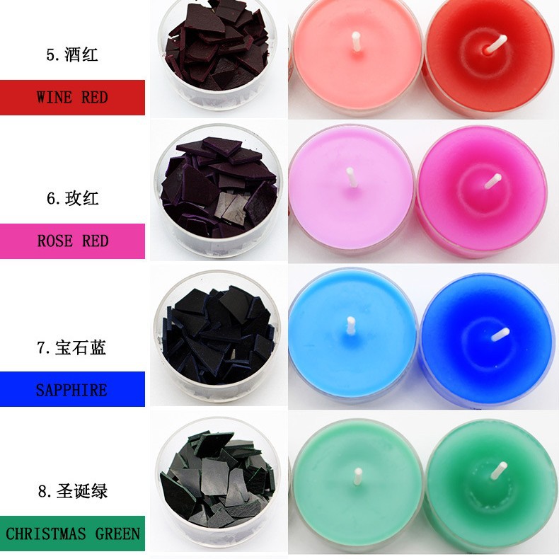 【蜡烛-色块-染料-片状】可用于石蜡 大豆蜡 冰花蜡 起酥油等材质的蜡烛着色包括但不限于工艺蜡烛 香薰蜡烛 普通照明蜡烛的制作diy。