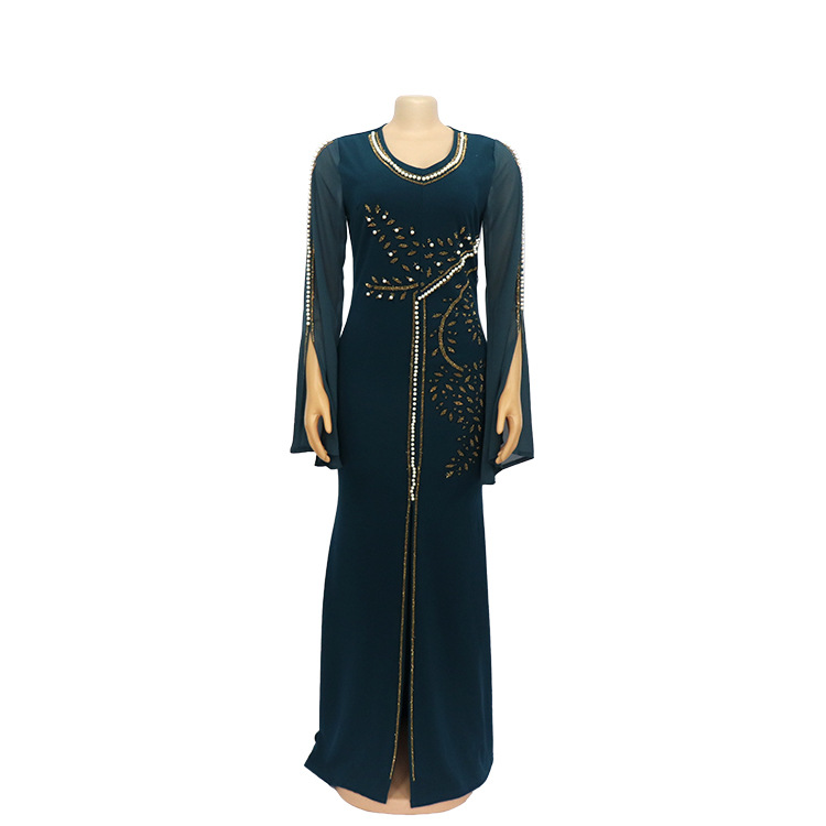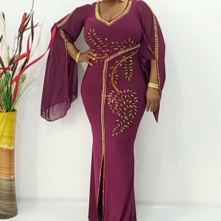 Европейское, американское и Африканское платье Элегантное длинное эластичное платье с рукавами из рога Модная качественная Тяжелая промышленная Горячая сумка для сверления бедер рыбий хвост больших размеров