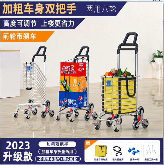 Тележка для покупок Tianxi Корзина для покупок Маленькая Тяговая тележка Легкая Портативная Складная тяга Бытовой прицеп Тележка для подъема по лестнице для пожилых людей