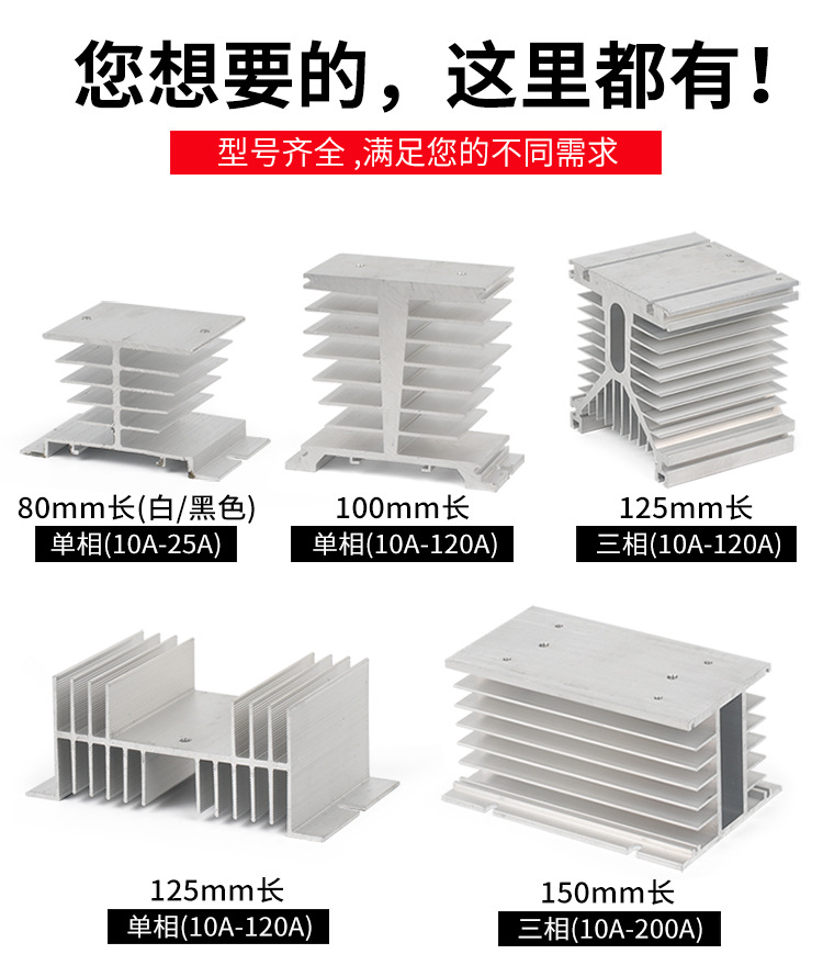 Радиатор SSR белый; Радиатор SSR черный; 50*125*70 вогнутый; Однофазная длина 100 мм.; Однофазный длина 100 мм с вентилятором; Три фазы длиной 110 мм.; Трехфазная длина 110 мм с вентилятором.; Трехфазная длина 125 мм.; Трехфазный длина 125 мм с вентилятором; Три фазы длиной 150 мм.; Трехфазная длина 150 мм с вентилятором