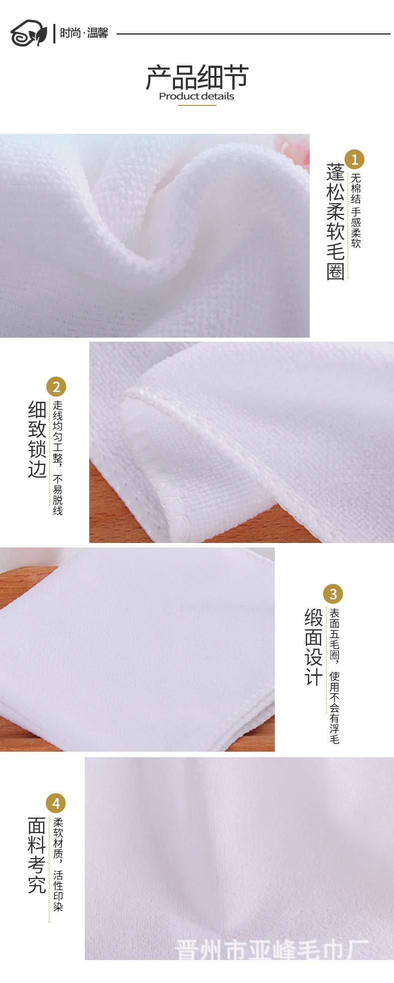 欢迎选购此款毛巾,本产品不易掉毛,是加厚款可做美容巾 宾馆毛巾 一次性洗浴毛巾,我们是厂家价格优惠产品质量有保障。如需定做请联系客服(尺寸和克重都可以定做)