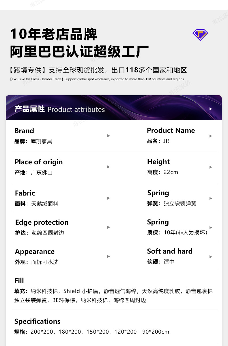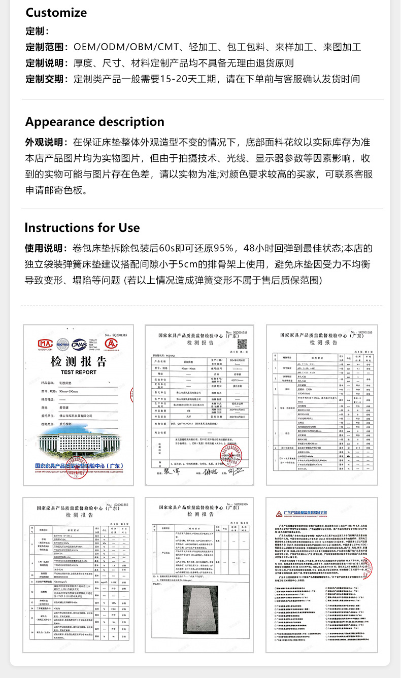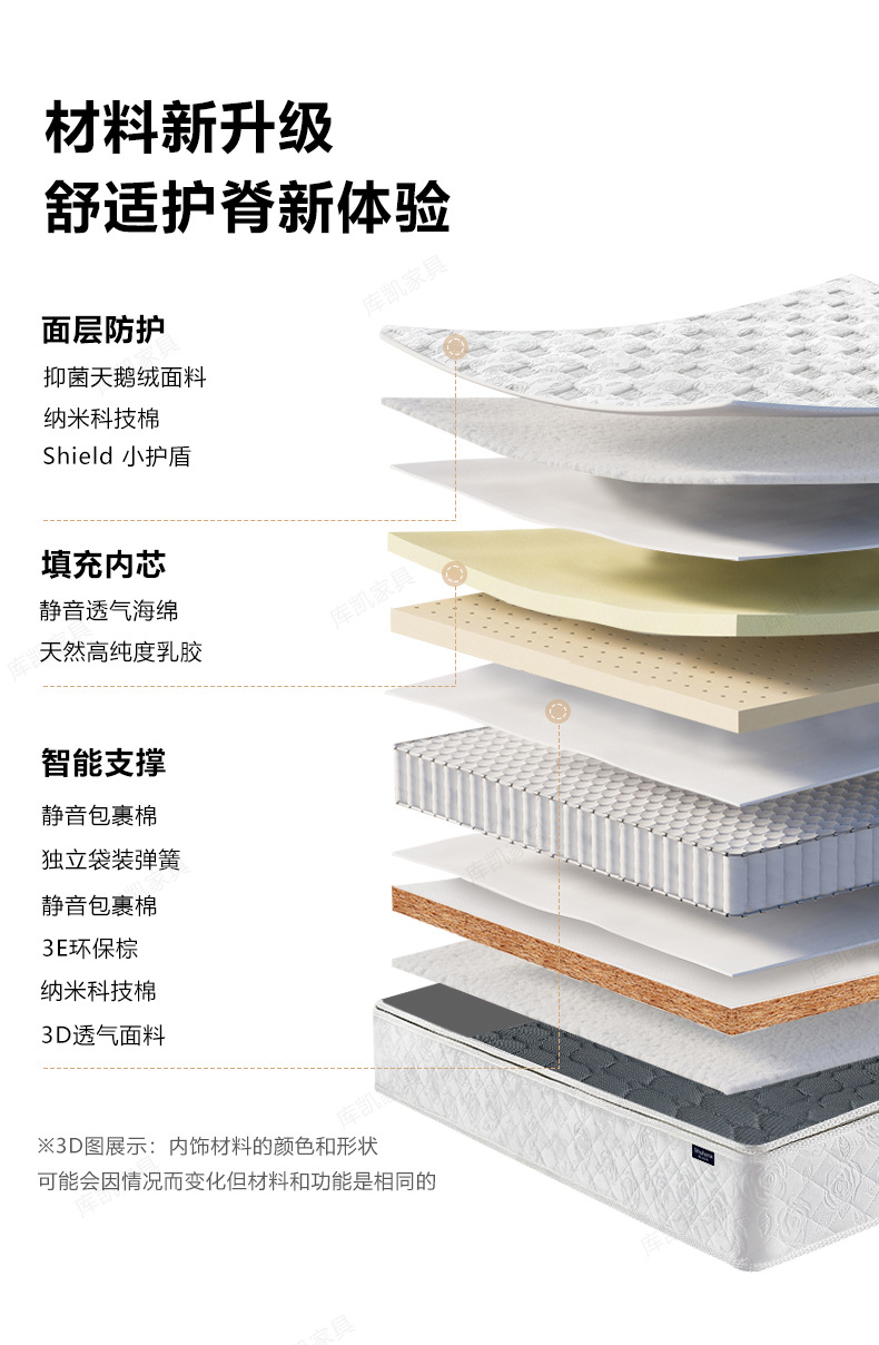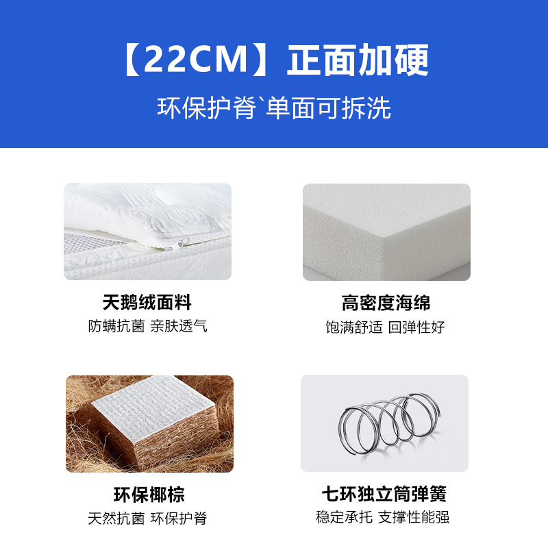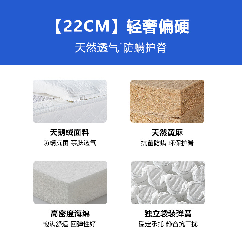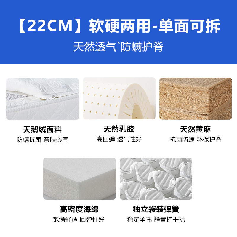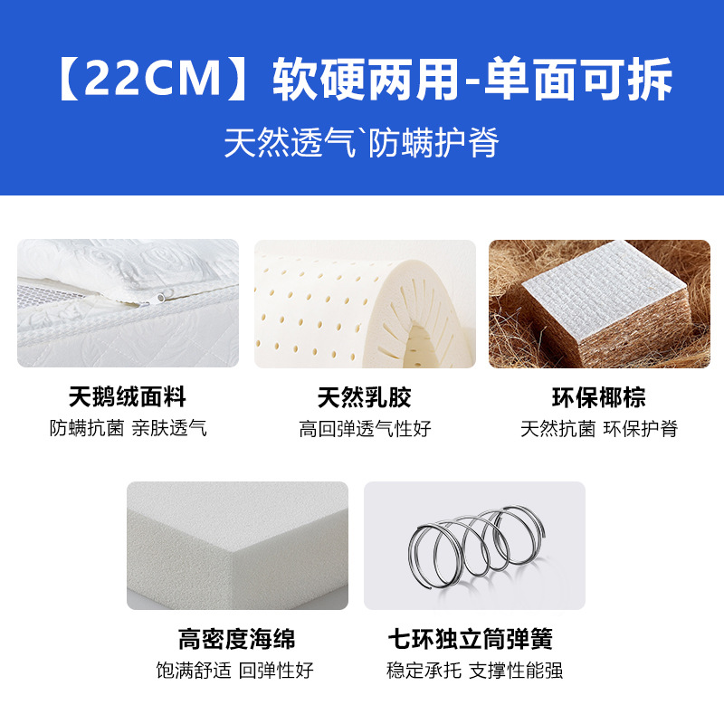 Классический Умеренный: натуральный латекс + независимая цилиндрическая пружина с семью кольцами (съемная и моющаяся с одной стороны); Классическое закалка B: Экологически чистая Кокосовая пальма + независимая цилиндрическая пружина с семью кольцами (съемная и моющаяся с одной стороны); Классический C мягкий и жесткий двойного назначения: латекс + независимая цилиндрическая пружина с семью кольцами + защита окружающей среды Коричневый (односторонний Съемный и моющийся); Классический D мягкий и жесткий двойного назначения: латекс + независимая цилиндрическая пружина с семью кольцами + защита окружающей среды Коричневый (двусторонний Съемный и моющийся); Легкая роскошь средней мягкости: натуральный латекс + яркая независимая пружина для сумки 2,3 линии (односторонняя, съемная и моющаяся); Легкая роскошь B Жесткая: натуральный джут + полужирная линия 2,3 Независимая сумка Весна (съемная и моющаяся с одной стороны); Light Luxury C Мягкий и жесткий: латекс + смелая независимая сумка 2,3 линии, пружина + джут (односторонний Съемный и моющийся); Легкая роскошь D, твердое и мягкое двойное использование: латексный + жирный 2,3 линия Независимая сумка Весна + джут (двусторонний Съемный и моющийся)