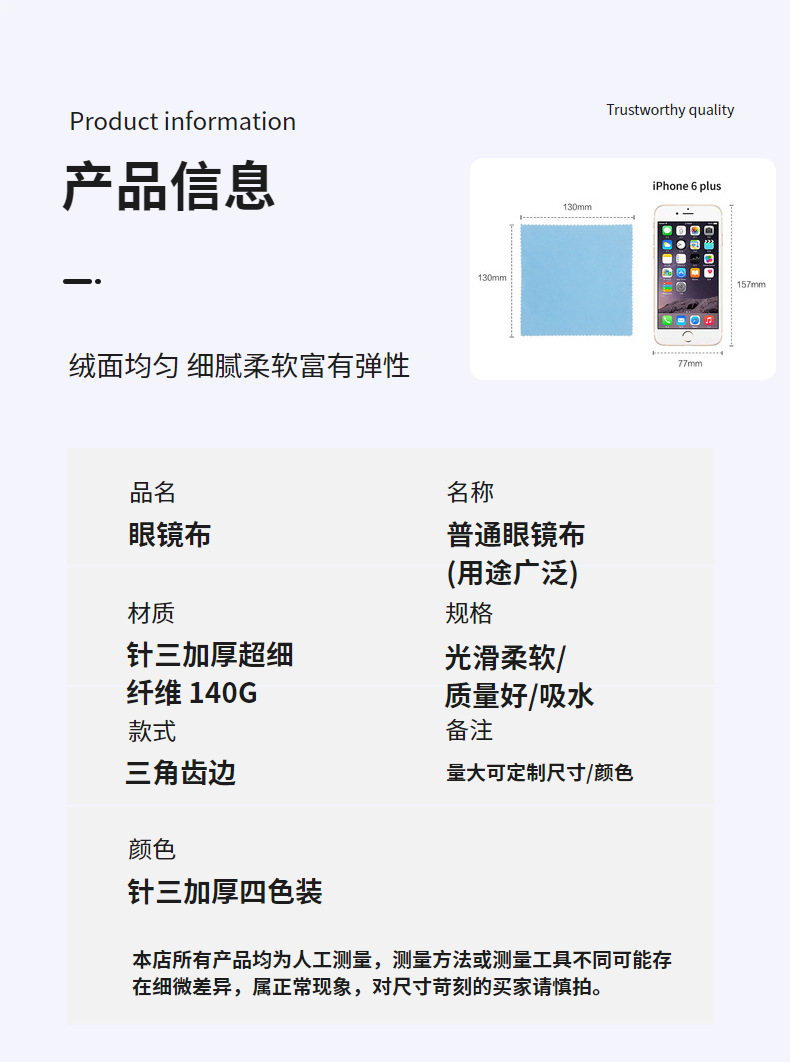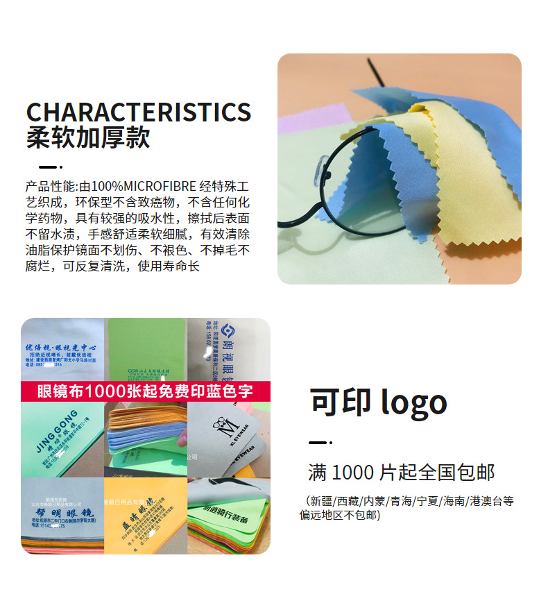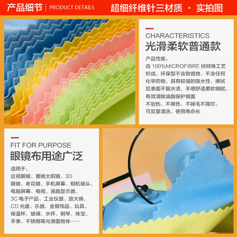 Оптовая продажа салфеток из микрофибры для очков, 8-ниточный ультратонкий волоконный материал, тройно утолщенная мягкая ткань для протирки и чистки глаз, высокая плотность.