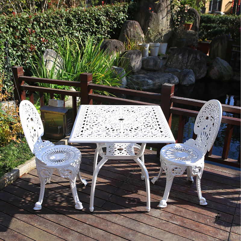 Стол и стул для отдыха на открытом воздухе Двор Вилла Железный литой алюминий Балкон из трех частей Мебель для отдыха на открытой террасе