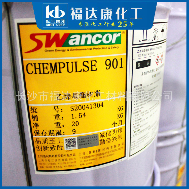 ·SWAN COR CHEM PULSE 901:为SWAN COR 901的进化产品, 除了保留原有SWAN COR 901优异的机械特性及耐化性外,更增加树脂反应性、降低放热量、淡化树脂颜色以及降低粘度,制品外观为淡绿色,为最新一代泛用标准型乙烯基酯树脂。