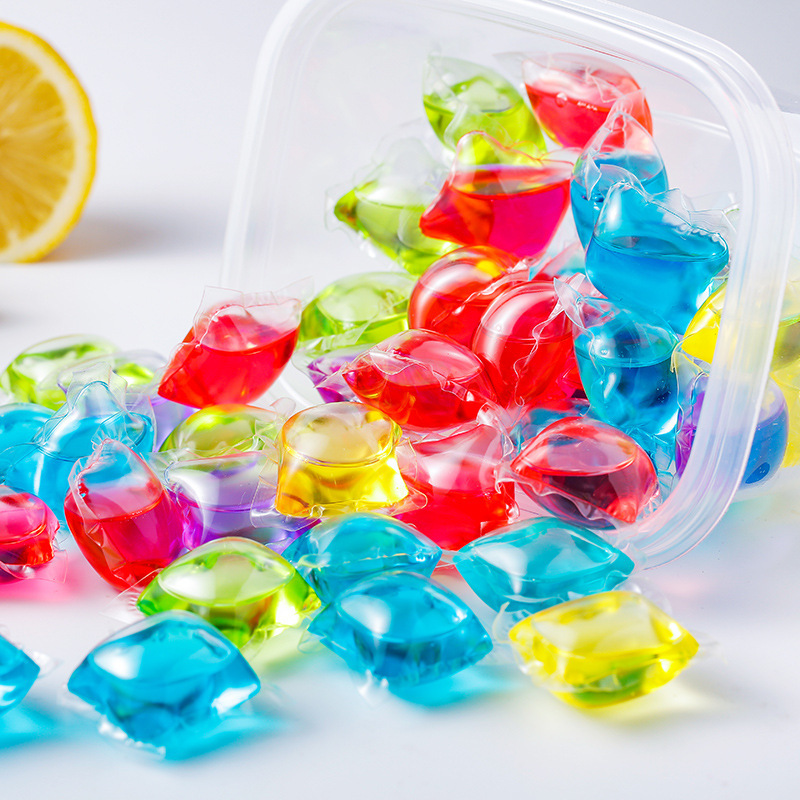 1、取出一颗凝珠(8倍浓缩一颗即可)。不要剪开或撕开。(透明包裹膜是水溶性的材质,无需撕开。)