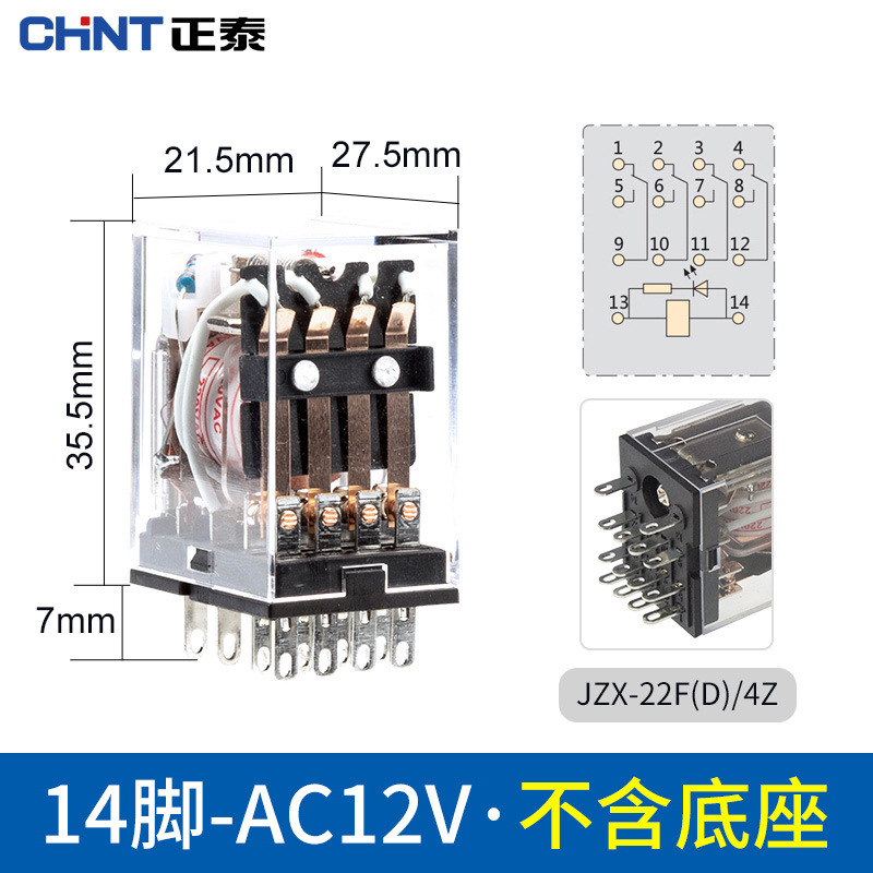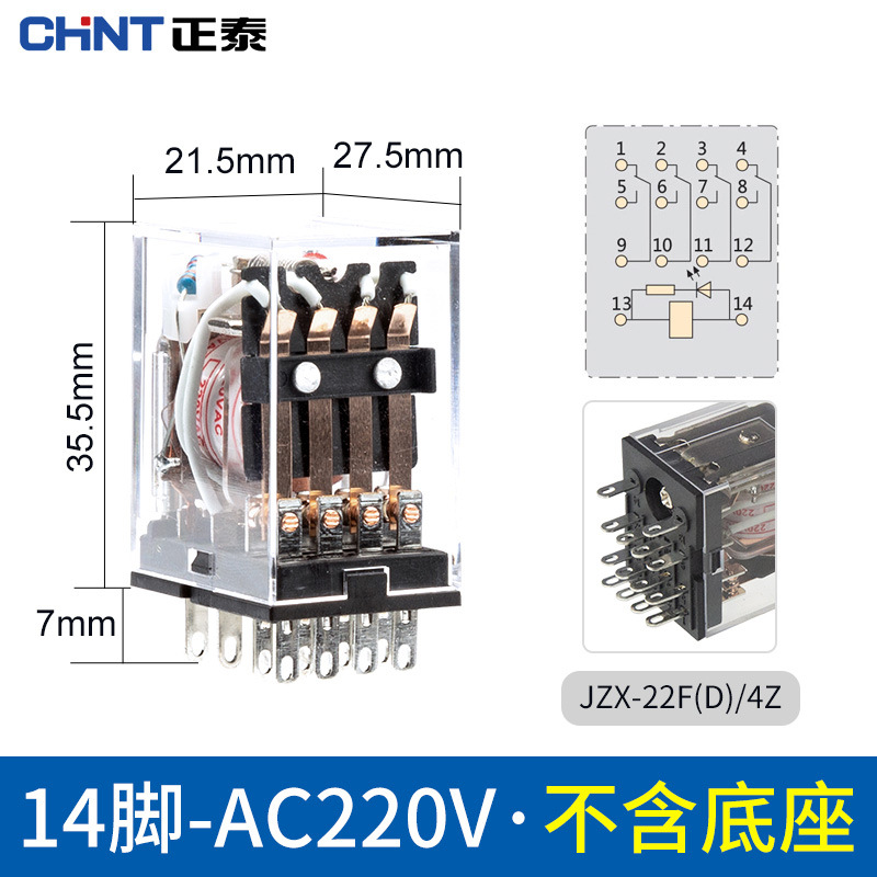Chint промежуточное реле 220 В переменного тока маленькое электромагнитное 24 В постоянного тока 8-контактный 14-контактный 380 В трехфазное основание 12 В