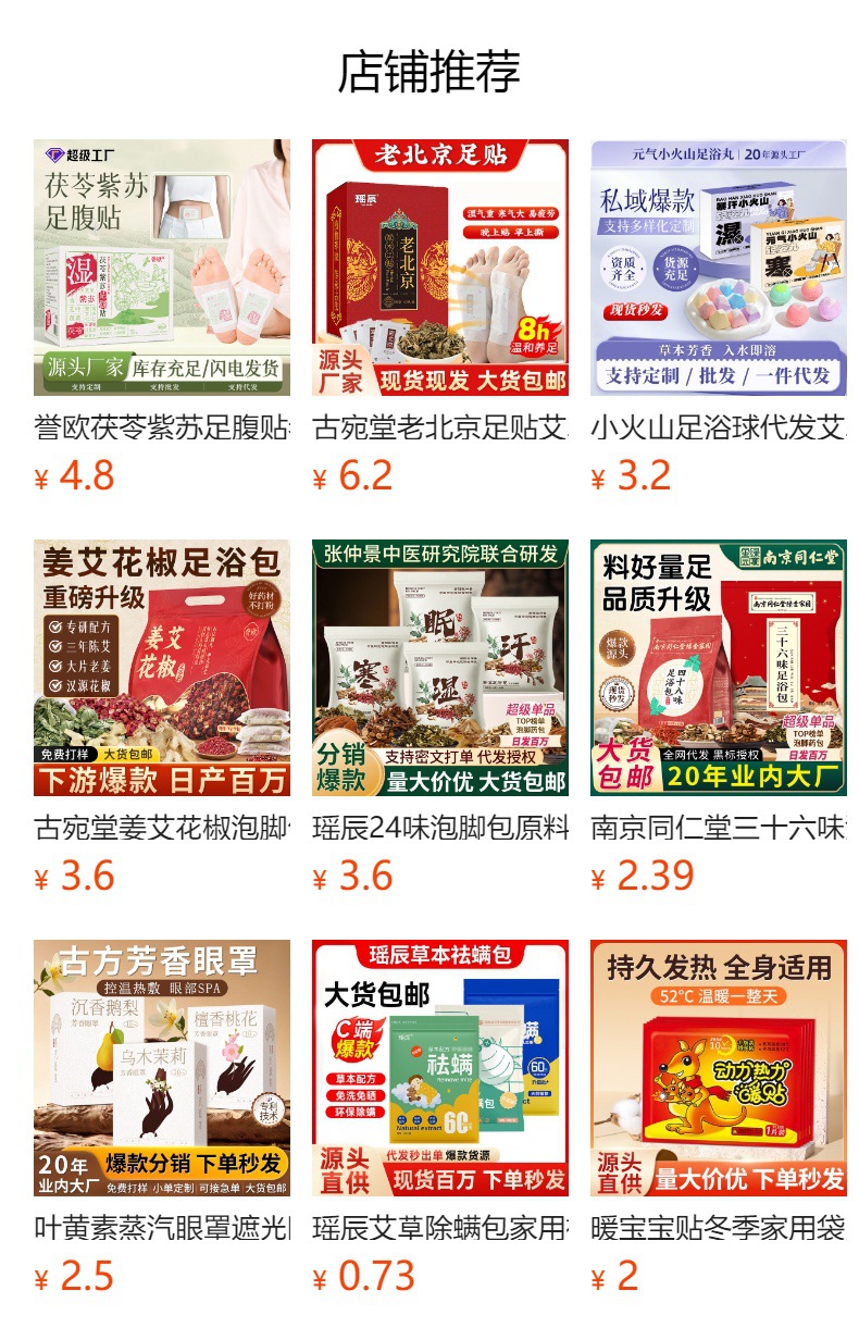Пластырь для ног Nanyang Zhang Zhongjing-Yuanqi Poria Bazhen (30 пластырей); Яочень - Пластыри для ног "Старый Пекин" (60 штук); Патчи для ног и живота с экстрактами пории и периллы (20 штук); Обновленная версия — Лао Пекинский имбирный пластырь для ног (60 пластырей); Обновленная версия - Старинные патчи для ног с полынью Пекина (60 штук); Пластырь для ног «Жигирь + имбирь» (60 пластырей*2); Пробный набор - Пластыри для ног с полынью "Старый Пекин" (10 пластырей)