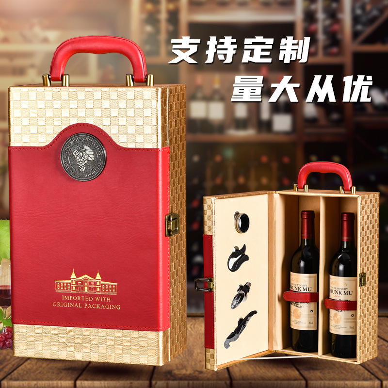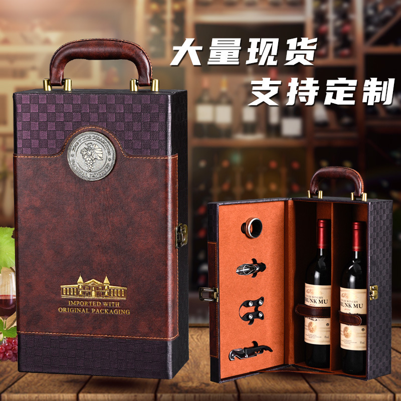 Красное вино Подарочная Коробка двойной две бутылки красного и белого вина коробка в наличии кожа 2 пакет красного вина коробка