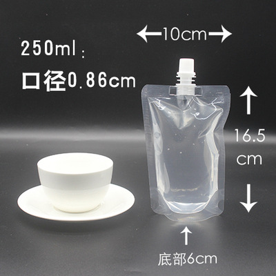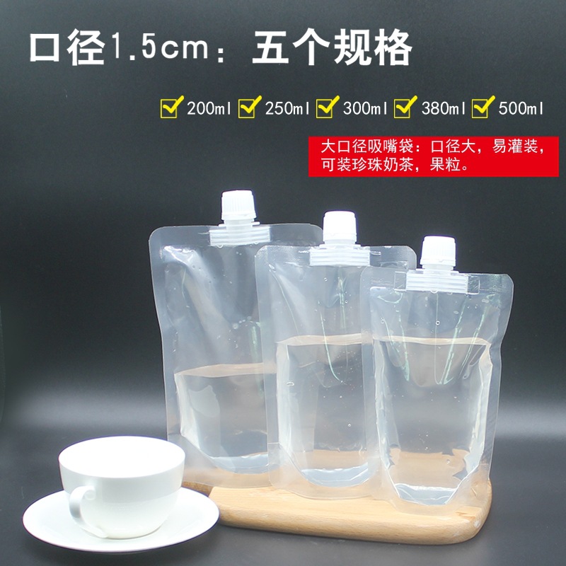 透明款的大口径吸嘴袋一共有8个规格, 100ml/200ml/250ml/300ml/380ml/500ml//750ml1000ml