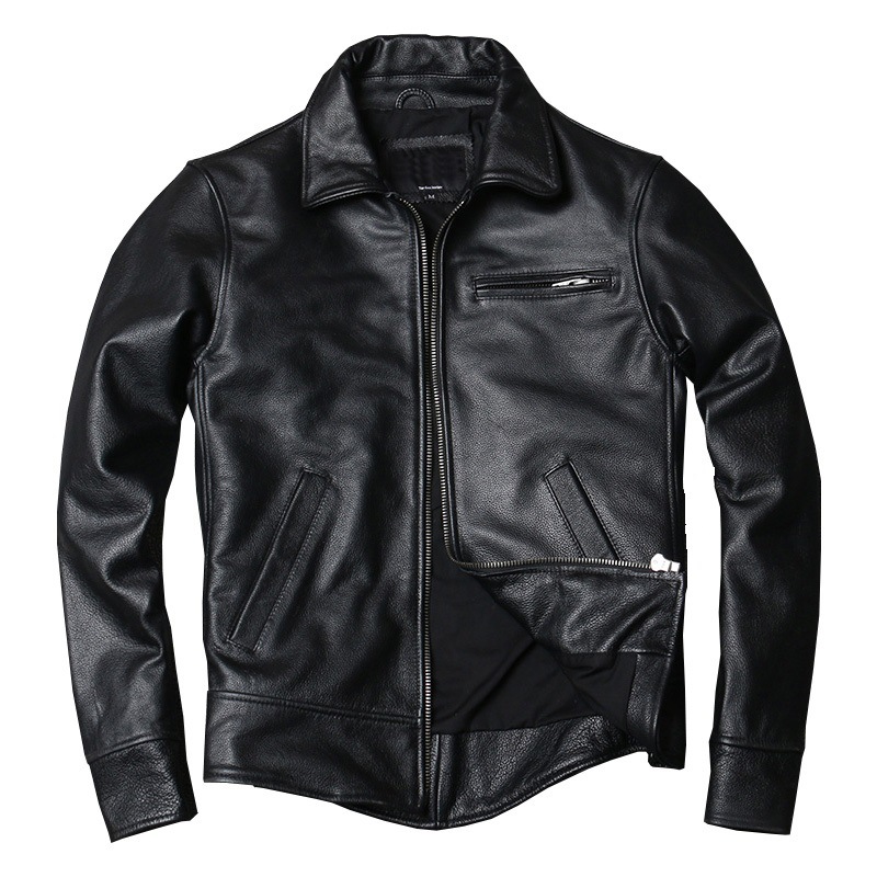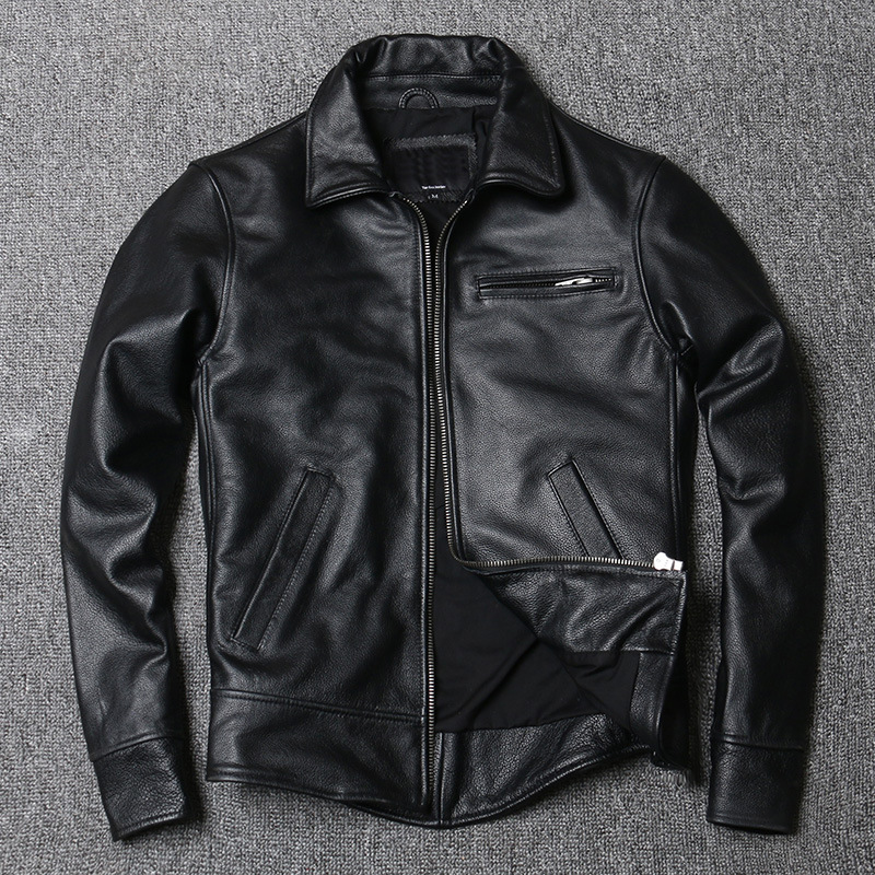 Распродажа Весна и осень Куртка из натуральной кожи «Ласточкин хвост» Мужская короткая приталенная кожаная куртка с лацканами Куртка из воловьей кожи первого слоя