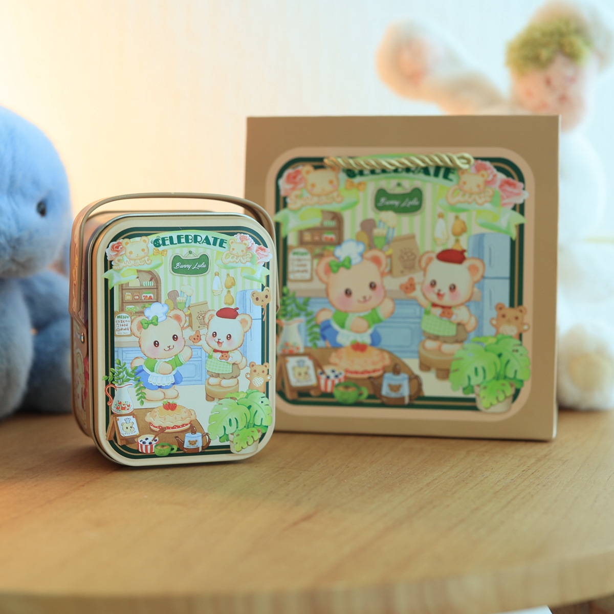 Портативные печенья коробки Tinplate металлические банки Бонни Кролик шаблон Конфеты выпечки Упаковка шоколад упаковка коробка