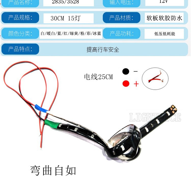 3528 1210 патч светодиодная мягкая световая полоса 30CM-15SMD Автомобильная световая полоса 12 В клейкое уплотнение 2835 световая полоса
