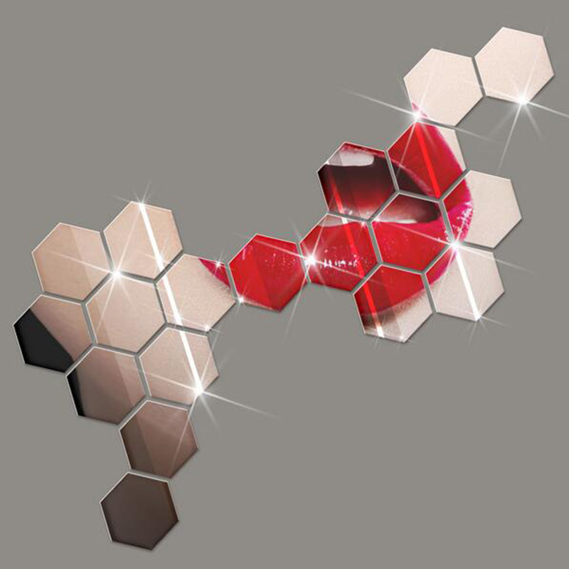 Самые продаваемые акриловые шестиугольные зеркальные трехмерные наклейки на стену для гостиной, входа, прохода, лестницы, фон, наклейки для украшения стены