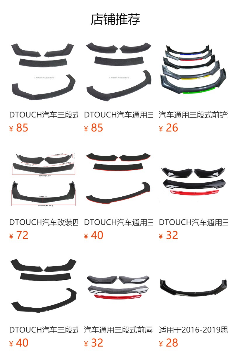 DTOUCH汽车四段式大前铲汽车适用四段式可调节组合前铲亮黑亮碳纤