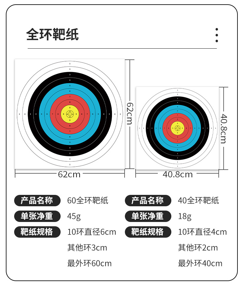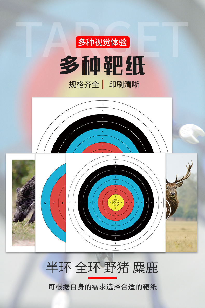 Полное кольцо целевая бумага 40*40; Половина кольца целевая бумага 40*40; Полное кольцо целевая бумага 60*60; Бумага для мишени кабана; Другие спецификации могут быть настроены; Лось целевая бумага; 80 целевая бумага с полным кольцом