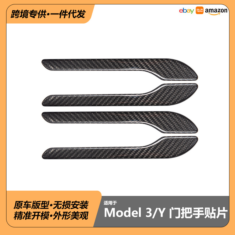 Наклейки на ручки дверей из сухого карбона для Tesla Model 3/Y, защита от царапин