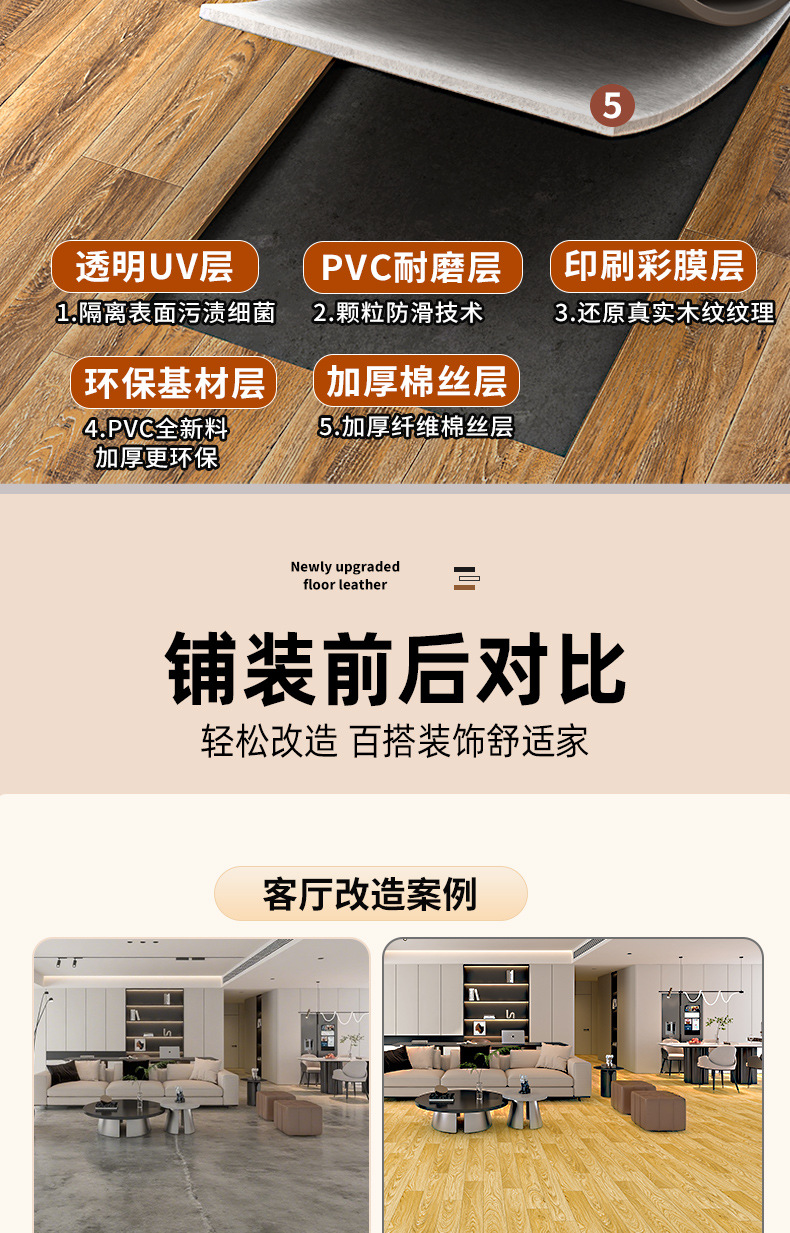 Кожа для пола утолщенная Водонепроницаемая износостойкая ПВХ самоклеящаяся пластиковая напольная цементная напольная наклейка Бытовая Коммерческая Инженерная кожа