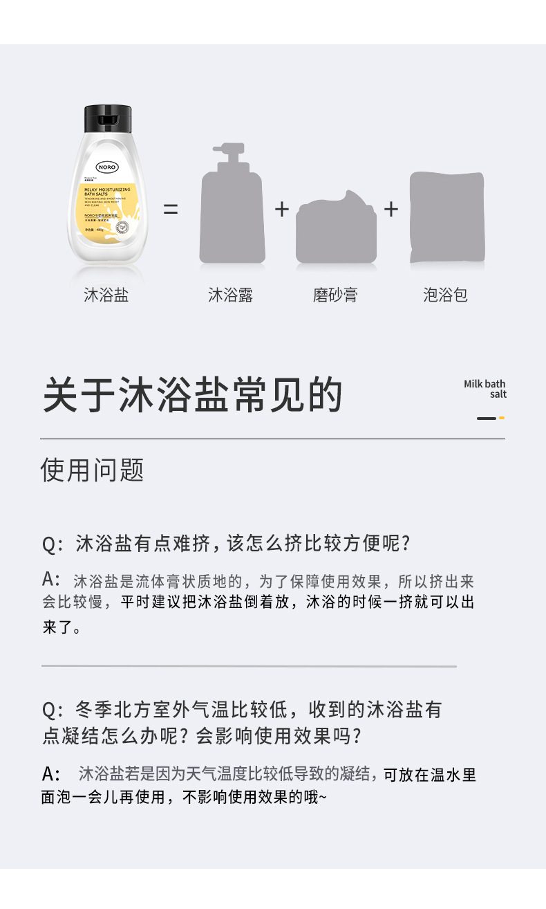 NORO Молочная соль для ванн, скрабы для тела, чтобы улучшить кожу Гель для душа Морская соль для студентов мужского и женского пола 400 г