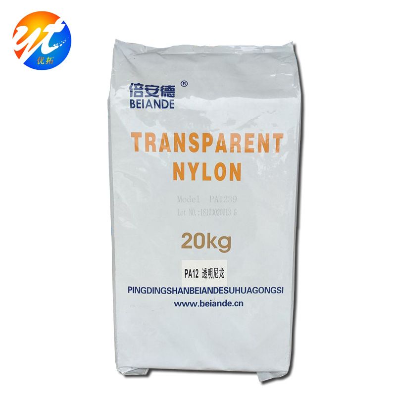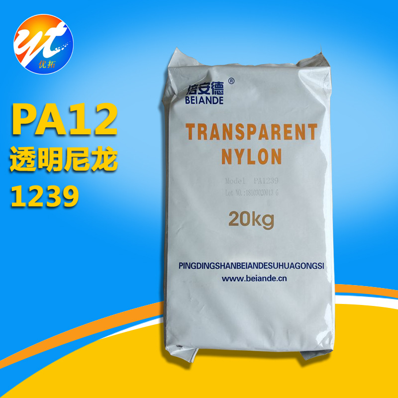 【产品详情】: 名称:PA12透明尼龙 厂家:平顶山倍安德 牌号:PA1239 包装:胶包,20KG/包