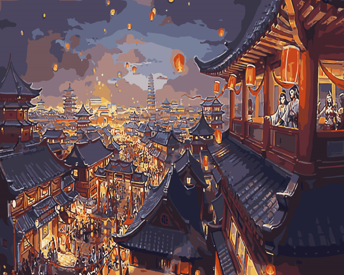 Оптовая Продажа с фабрики 40*50 Безрамная DIY цифровая картина маслом Ручная роспись Гостиная Пейзаж архитектурная декоративная живопись дворец лампа ночь яркий