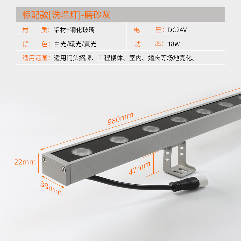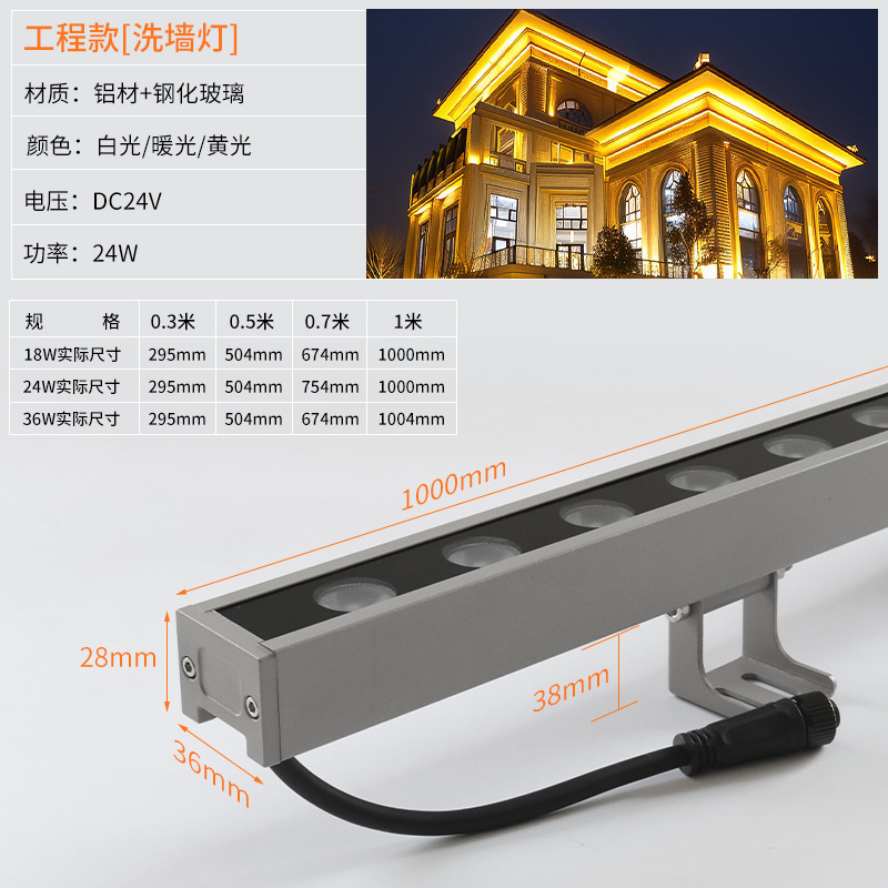 Светодиодная наружная настенная лампа DMX512 осветления инженерная линейная лампа 18W Наружные стены красочный свет низкого напряжения 24Vrgb