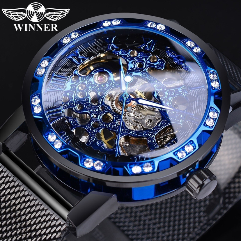 Дропшиппинг часы с бриллиантами, мужские модные повседневные классические популярные полые стразы, ручные механические часы