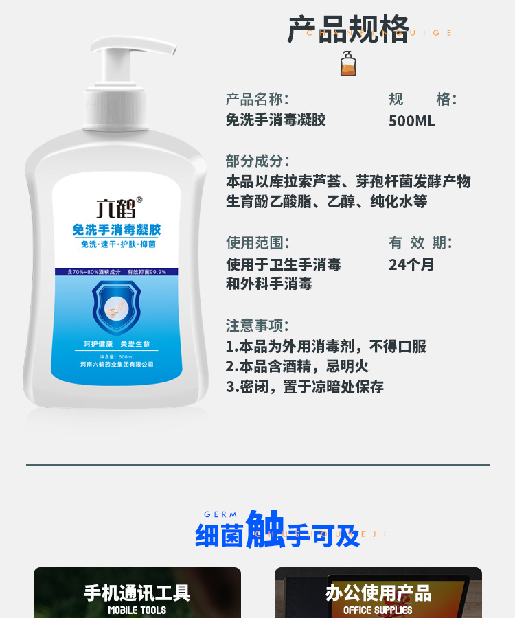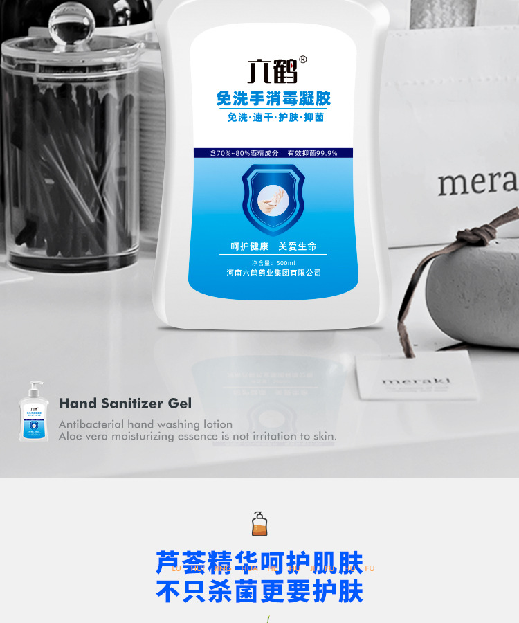 Гель для дезинфекции рук Liuheng без смывания, 500 мл, с алоэ вера, 75% спирта, для больниц и фабрик, без необходимости смывания водой
