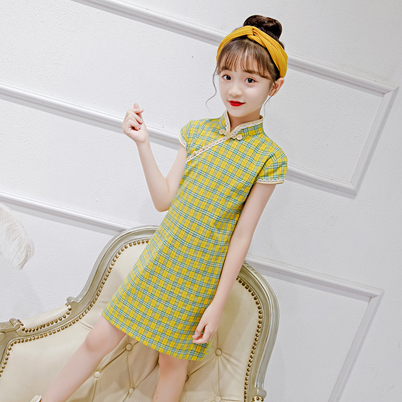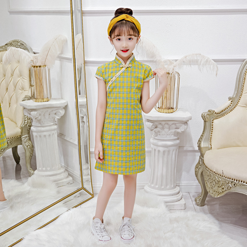 Улучшенное платье Чонсам в этническом стиле для девочек, модное платье Чонсам в клетку для похудения с талией, Детский костюм Тан в стиле ретро