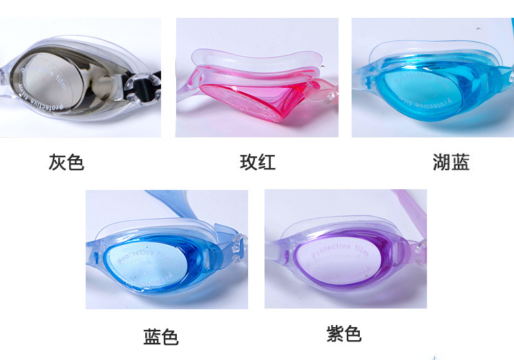 产品特性|Product characteristics:平光防水防雾泳镜,鼻梁柔软舒适,可随意弯曲。镜圈严密贴合眼部,防水护眼,PC高清镜片,内有防雾涂层,视野更清晰。