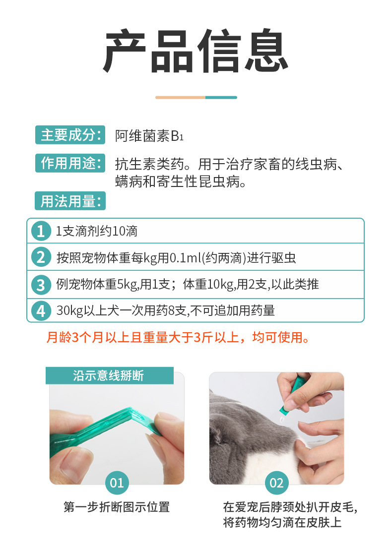 Bamu Abamectin Трансдермальный раствор Препарат для дегельминтизации кошек и собак Внутренние и наружные дегельминтизирующие капли 3 шт.