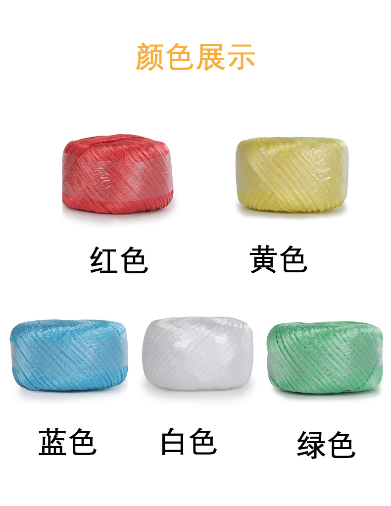 塑料绳由PP新料加工而成,拉力强,抗磨损,结实耐用,光滑柔软,无异味等特点,广泛适用于企业产品包装,家庭用品包装,服装,鞋类,纸类,蔬菜等捆扎类产品。