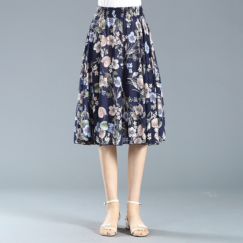 Цельная юбка с доставкой, Женская Летняя короткая юбка, Женская юбка для танцев среднего и пожилого возраста, Юбка-миди из ледяного шелка с эластичной талией