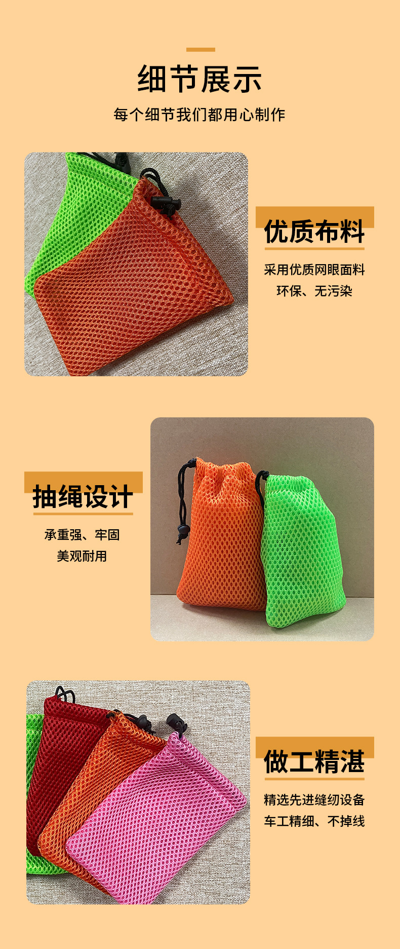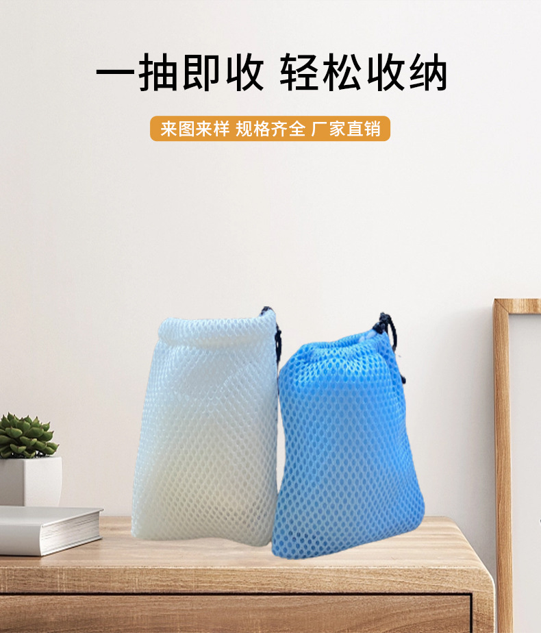 Оптовая продажа сетчатых мешков для хранения с завязками, утолщенные полиэстеровые мешки из сетки, однотонные сетчатые мешки для хранения.